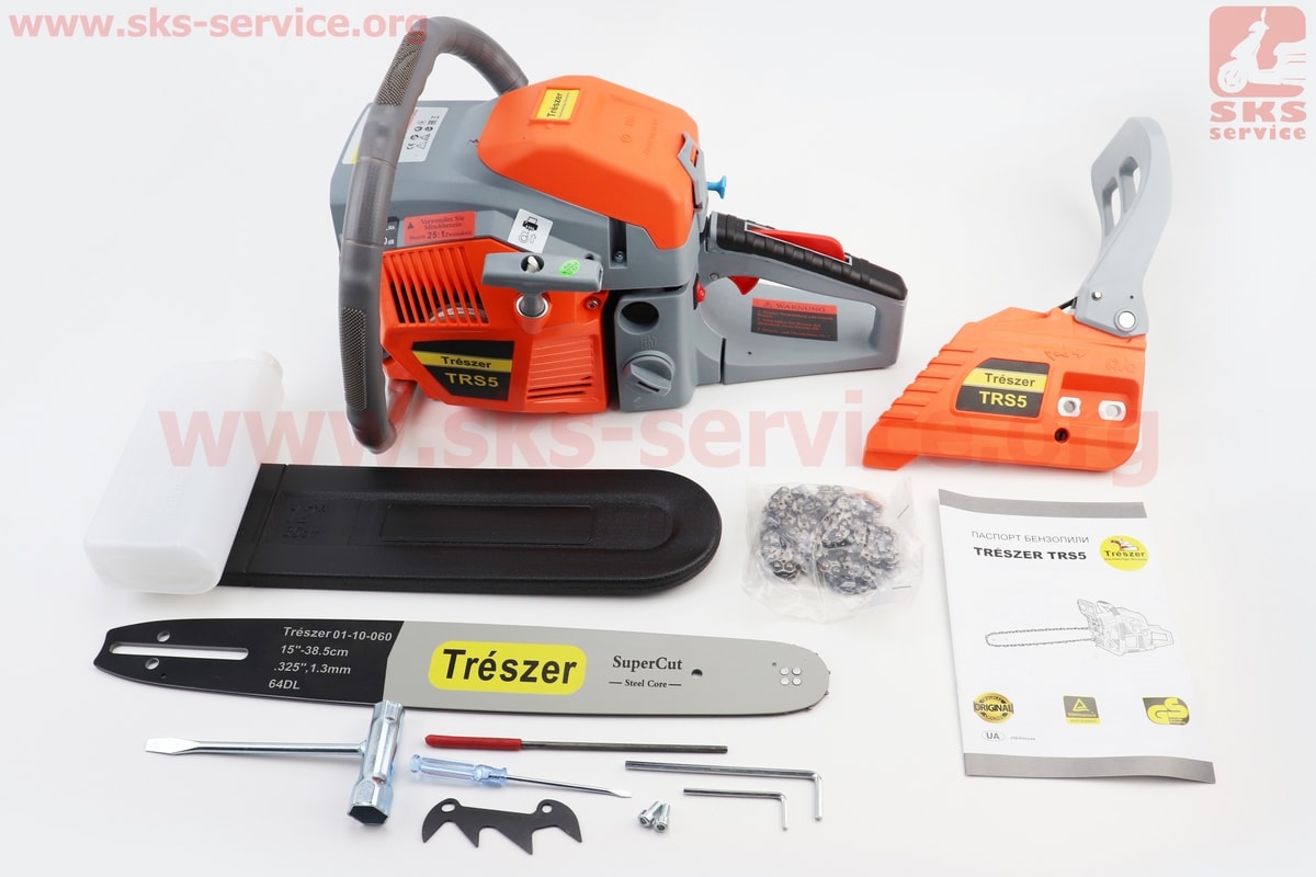 Бензопила TRESZER TRS5 45cc (2,8кВт. шина 15", ланцюг 325-1,5-64зв. квад. зуб) з підкачуванням, плавний пуск