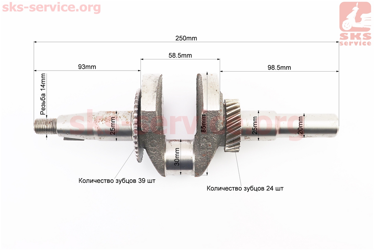 Коленвал 168F/170F (Dшейки-30mm, H-85mm, L-250mm) под шпонку D-20mm