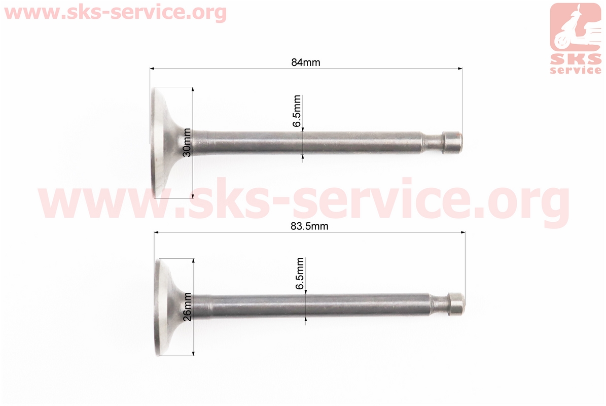 Клапан впускной (h-84; D-30; d-6,5), выпускной (h-83,5; D-26; d-6,5) к-кт 2шт 173F/177F
