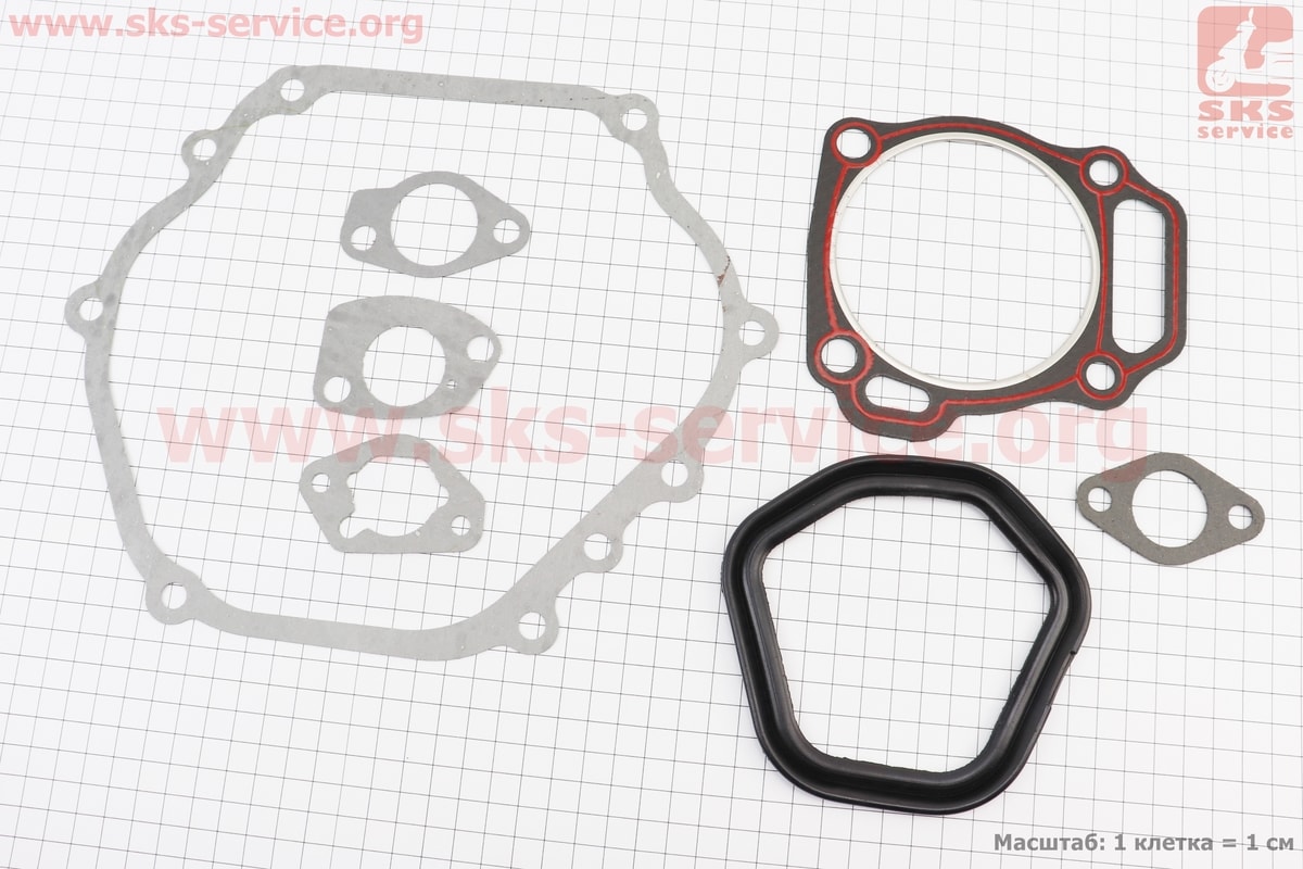 Прокладки двигателя 188F-88mm, к-кт 7 деталей, (паронит, резина, красная нить)