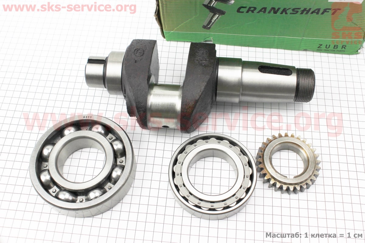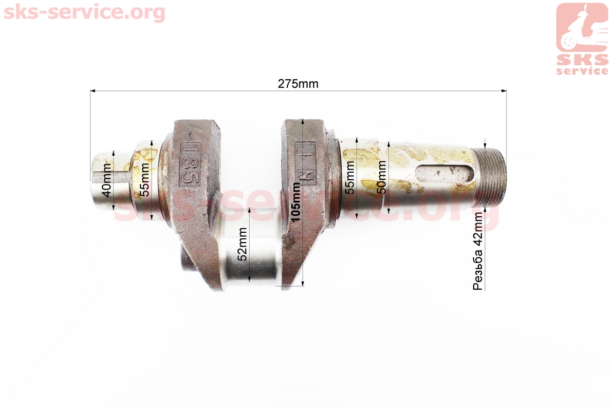 Колінвал R185N/R190N (Dболта-М12x1,5, Dшейки-52mm, H-105mm) +підшипники+шестерня