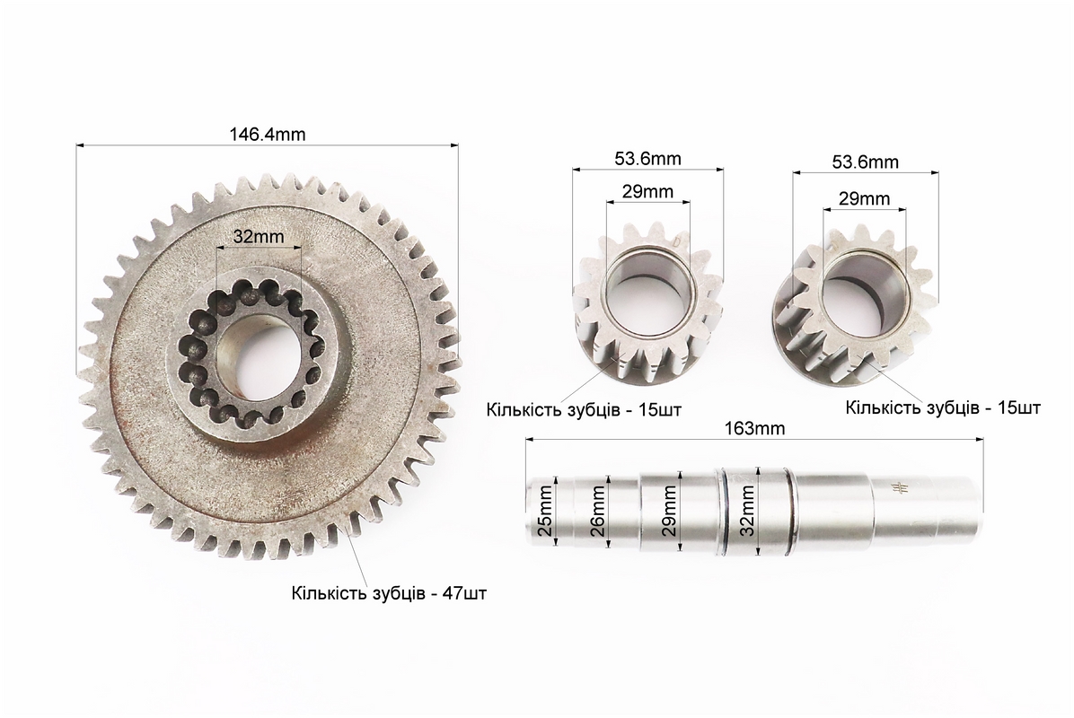 Вал КПП дифференциала+шестерня Z-47+шестерня-2шт Z-15, к-кт 4шт 101-2 (возможен налет)