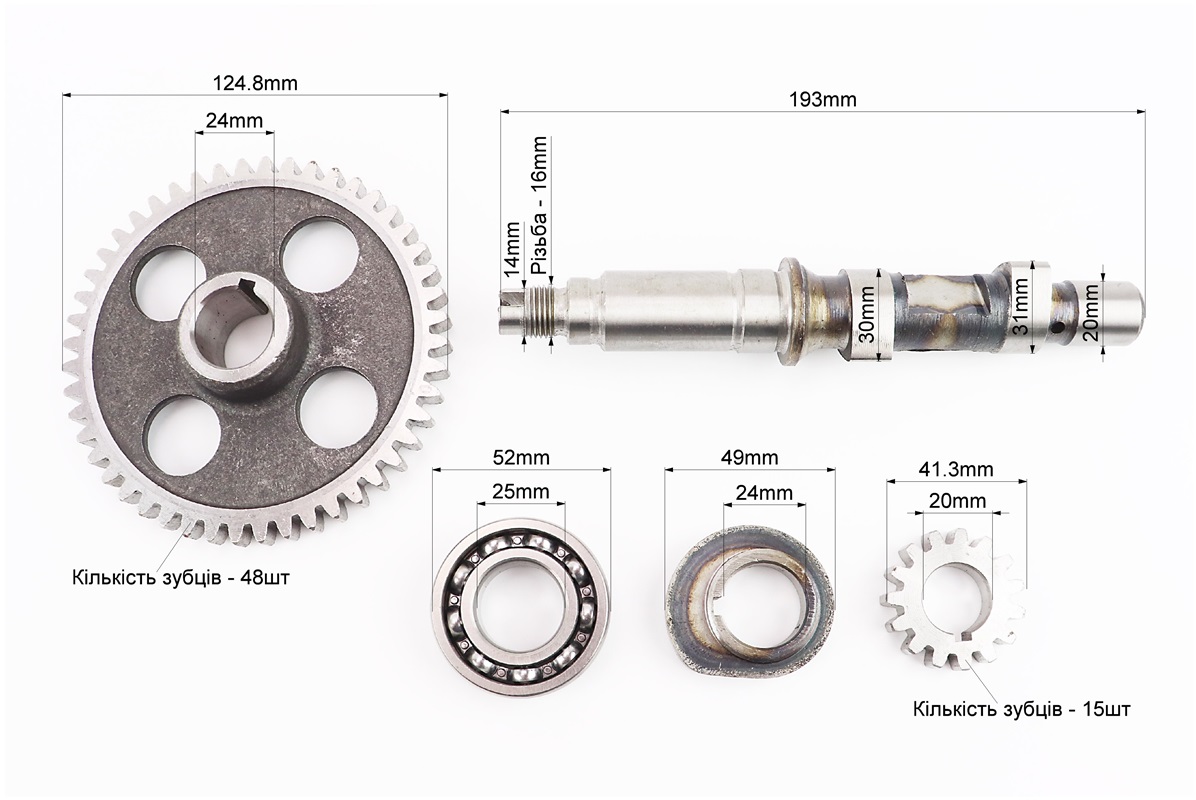 Распредвал + шестерня Z-15, d-20mm + шестерня Z-48, d-24mm + кулачок + подшипник 6205 R175A/R180NM