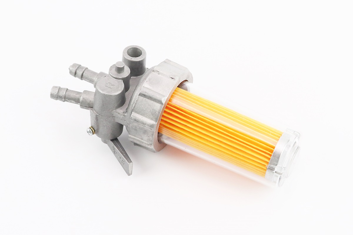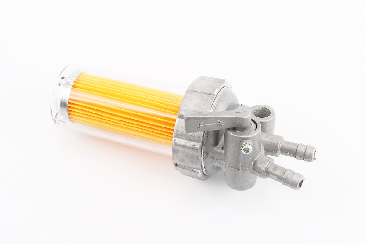 Паливний кран + фільтр в пластмасовому, прозорому корпусі (вхід/вихід вгору)