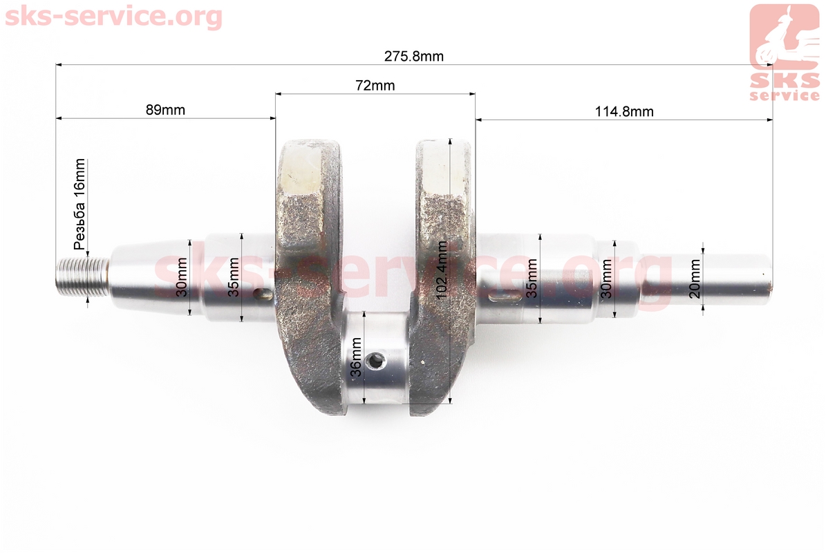 Коленвал 178F (Dшейки-36mm, H-102,4mm) под шпонку D-20mm
