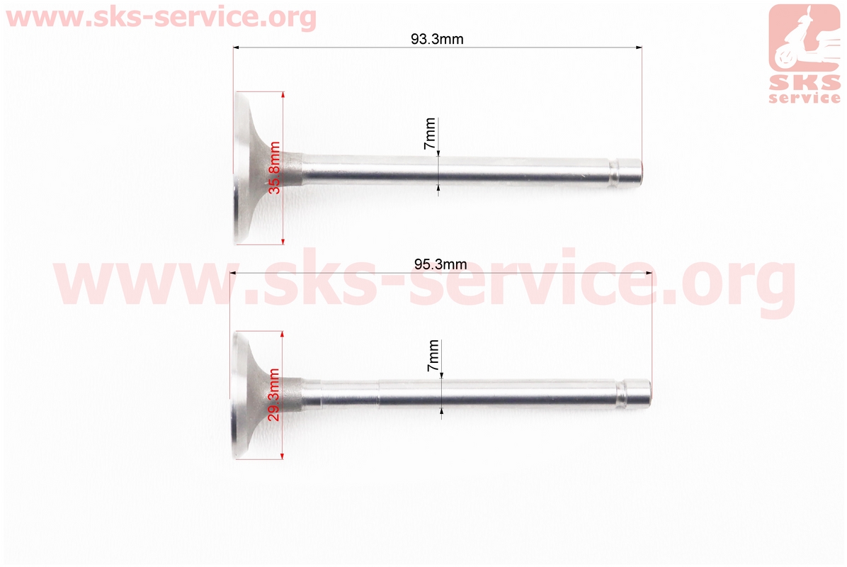Клапан впускной (h-95; D-35,8; d-7), выпускной (h-95; D-29,3; d-7) к-кт 2шт 186F
