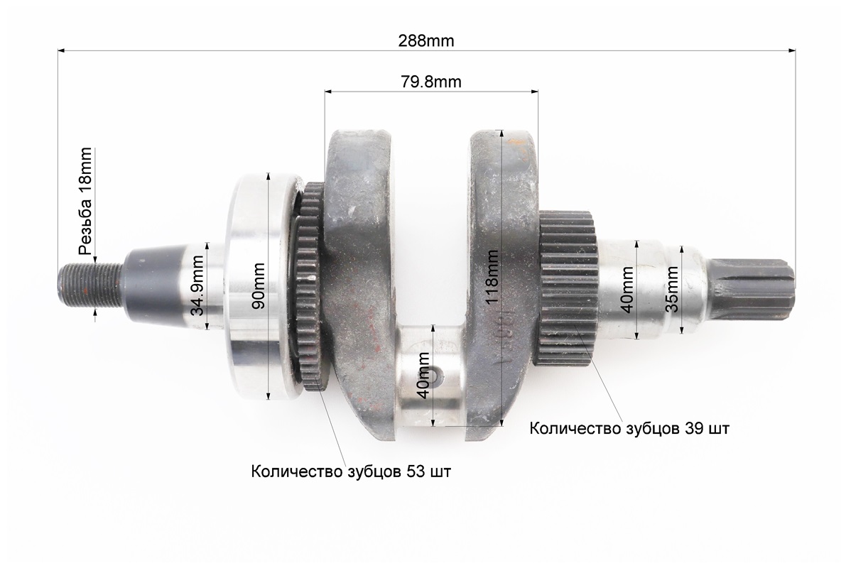 Коленвал 186F (Dшейки-40mm, H-118,0mm) под шлиц +шестерни+подшипник, запрессованный