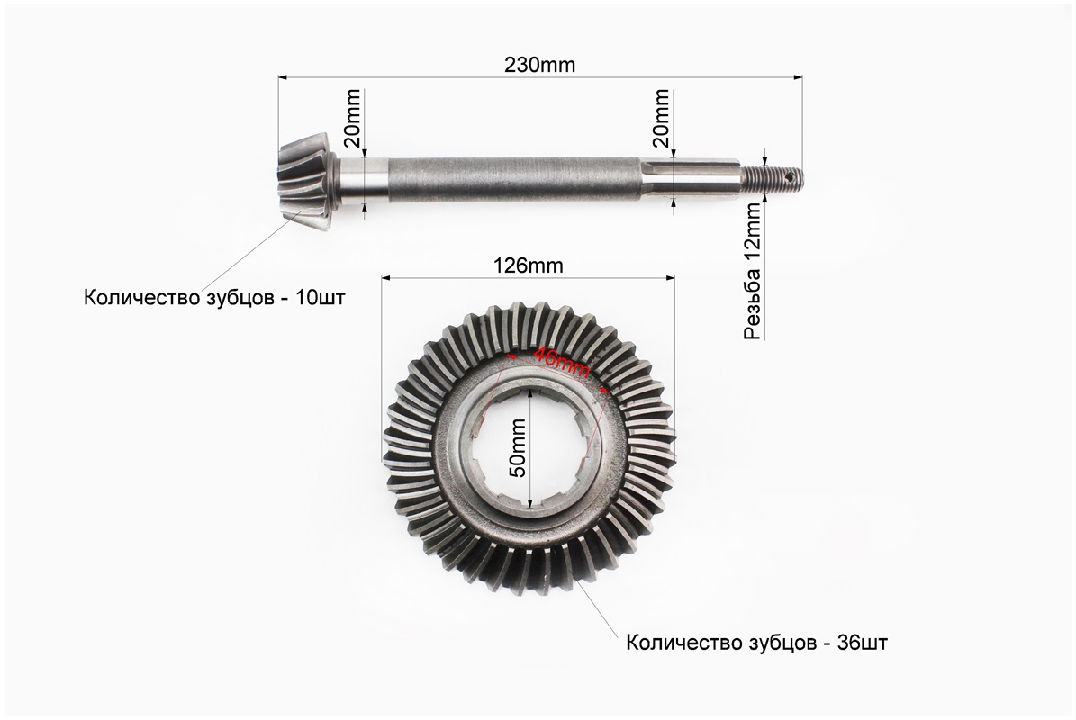 Вал піввісі первинний Z-10 + Шестерня піввісі вторинного вала Z-36 к-кт