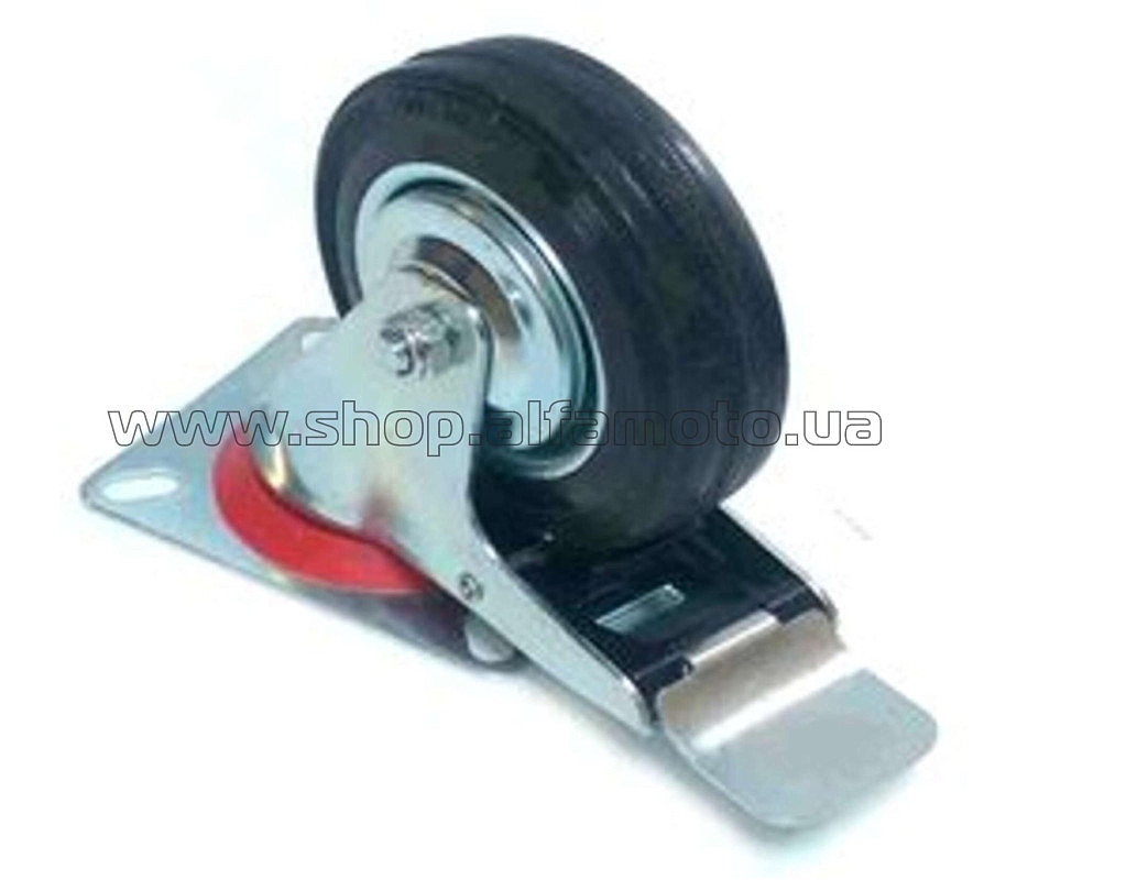 Колесо для тачек и платформ (литая резина) (в сборе с креплением и тормозами) (100mm) ELIT