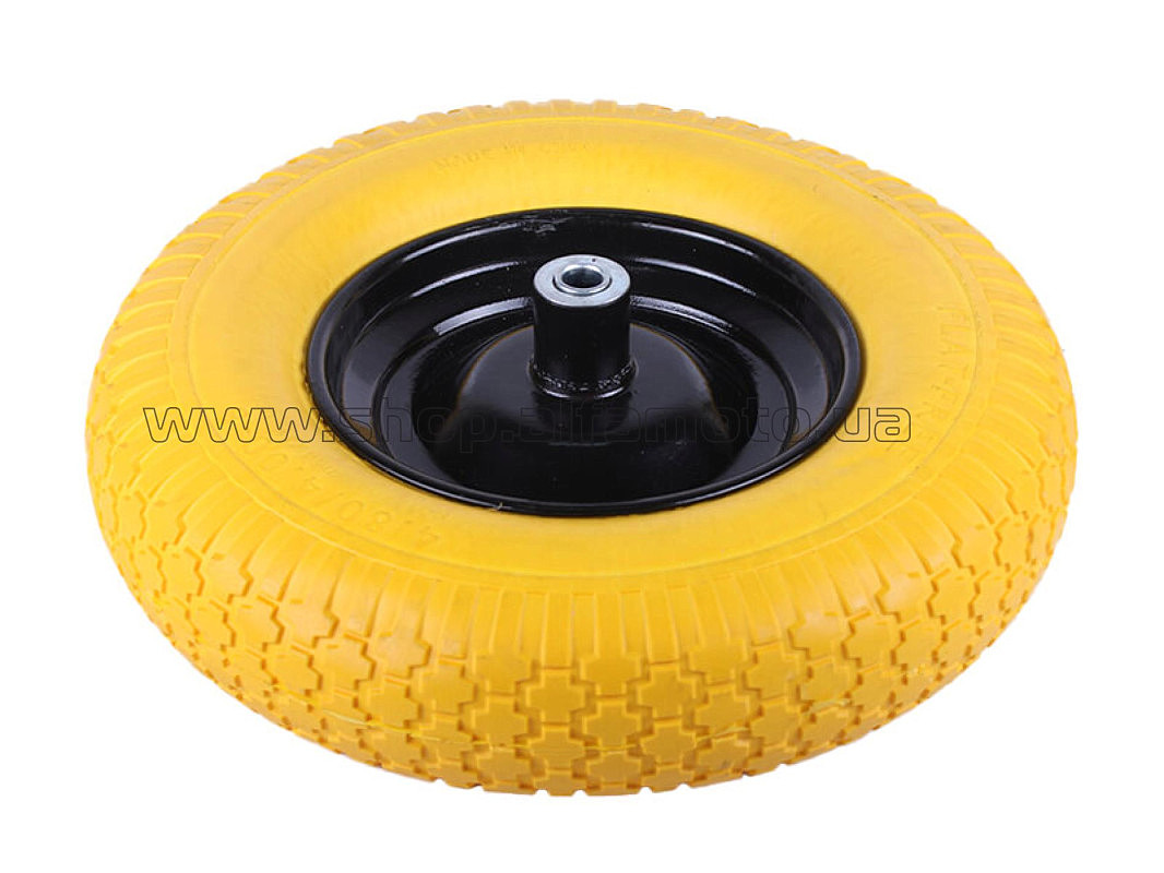 Колесо 4,00 -8 TL (бескамерное, под ось d-16мм) (пенополиуретановое, желтое) AMG-2