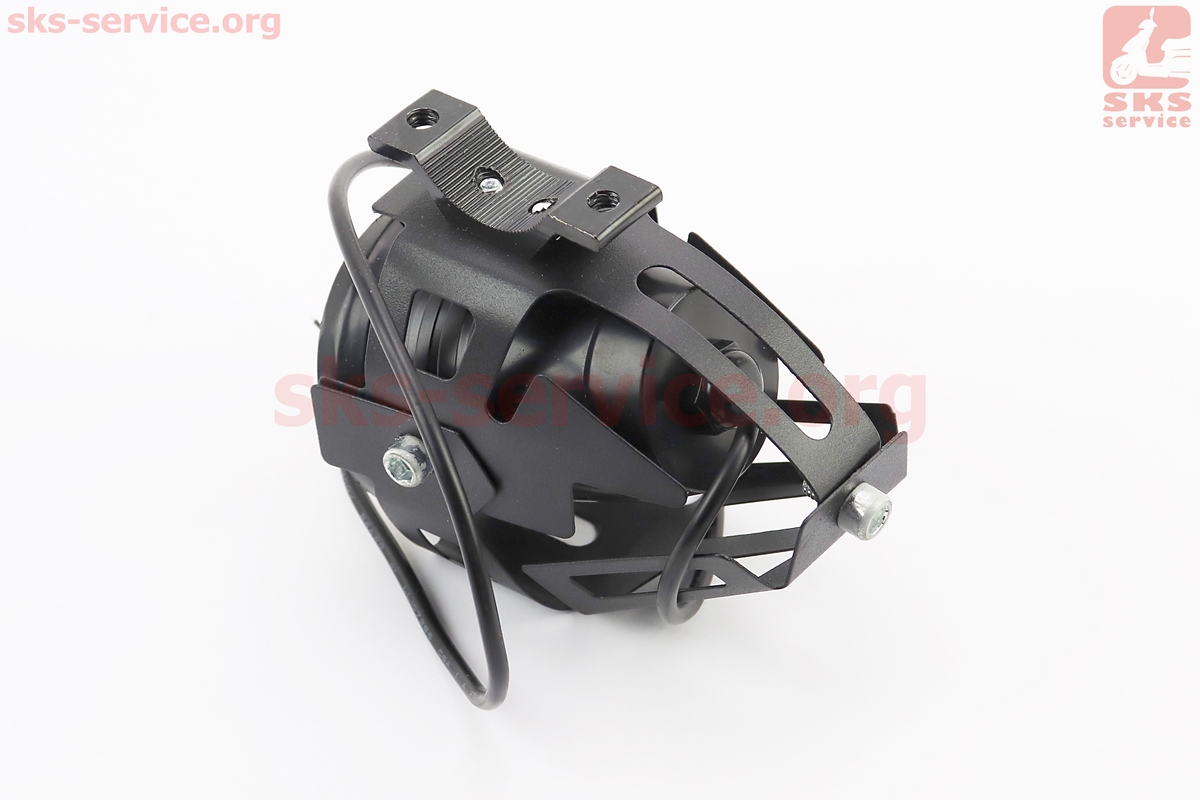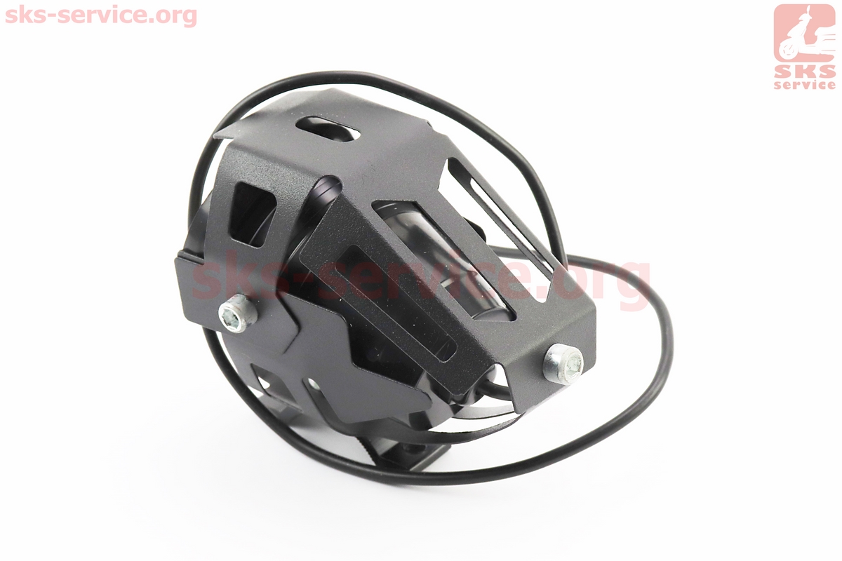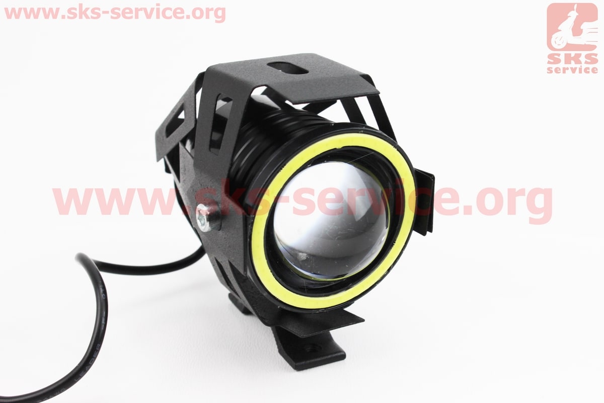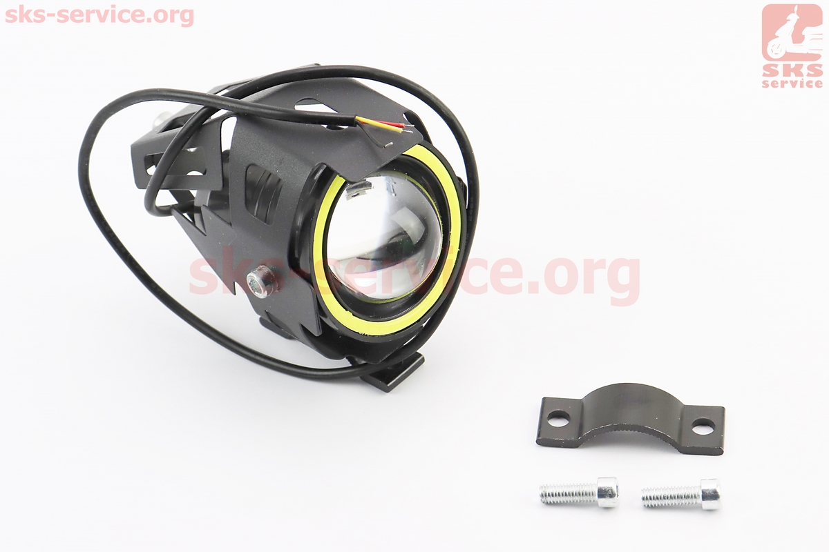 Фара дополнительная светодиодная влагозащитная - LED линза с ободком "ангельский глаз" в металлическом корпусе, с креплением на руль, 110*70мм