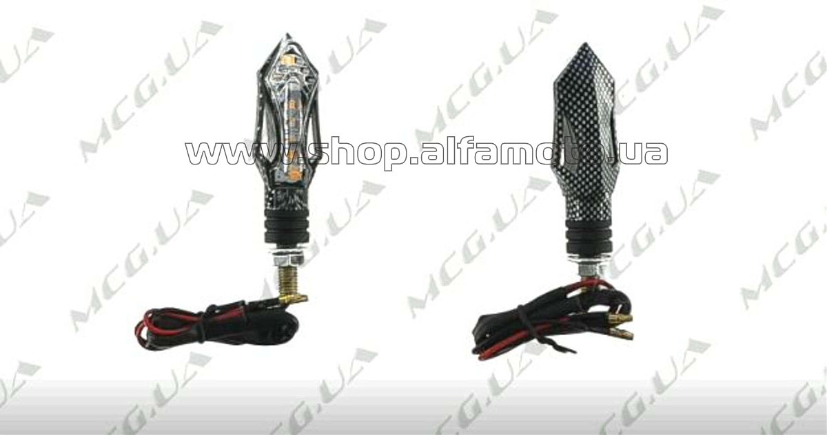 Поворот светодиодный, большой кристалл (8 LED, черный, карбон, белое стекло) JS