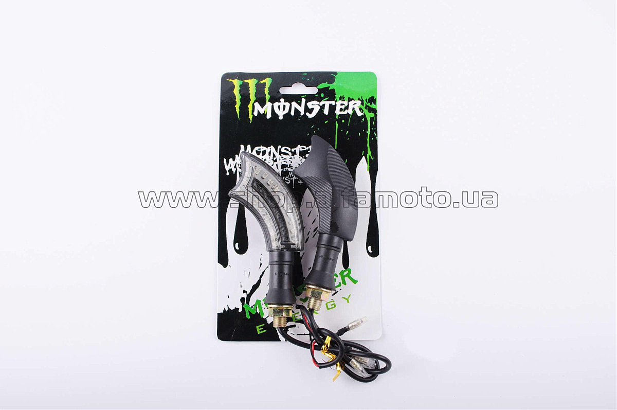 Повороты светодиодные (пара) изогнутые (черные, прозрачные, 21 диод) MONSTER ENERGY