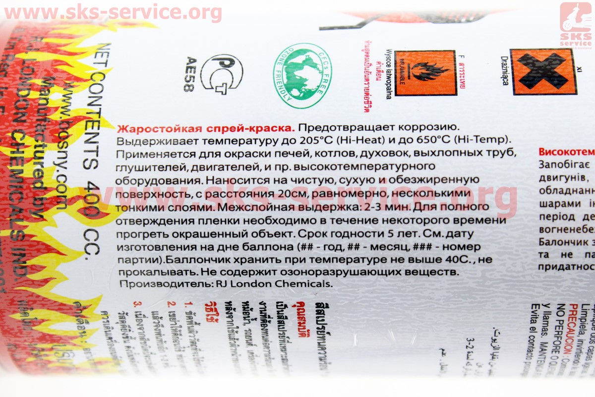 Краска акриловая жаростойкая 400°F, №0025 "ЖЕЛТЫЙ", Аэрозоль 400ml