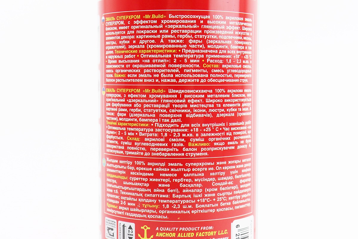 Краска акриловая №22 "ХРОМ СЕРЕБРО", Аэрозоль 400ml