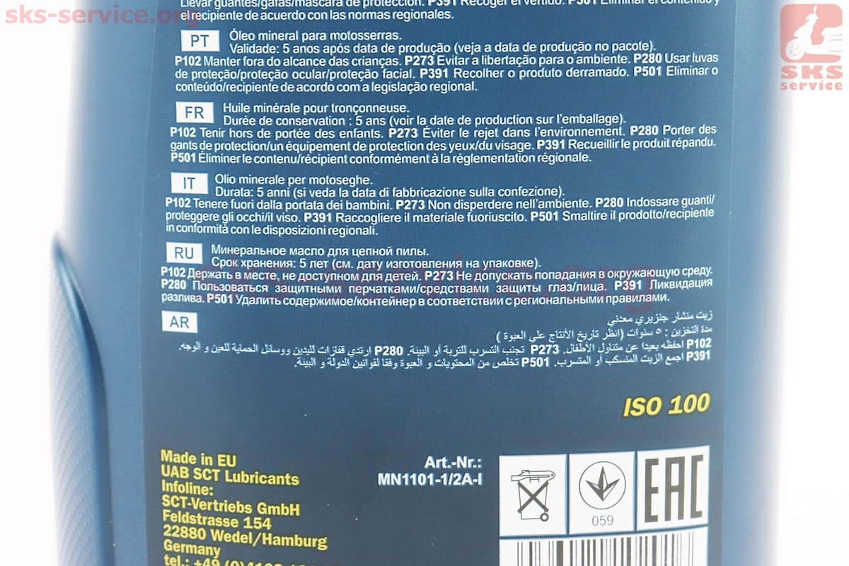 Масло минеральное для смазки режущих цепей пил "KETTENOEL", 1L
