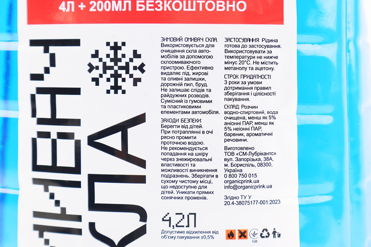 Жидкость  для чистки стекол -20°С (в бачок омывателя) "Морський бриз", синяя 4,2L