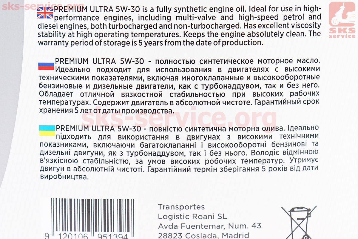 Масло 4T 5W-30 — синтетическое универсальное "Full Syntetic C3-SN/CF", 5L
