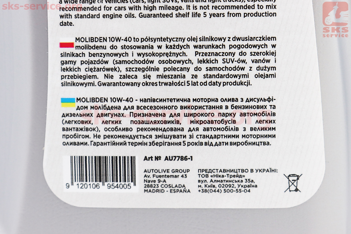 Масло 4T 10W-40 — полусинтетическое универсальное, "Molibden Diesel & Benzin" 1L