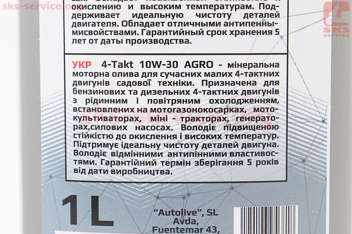 Олива 4T 10W-30 — напівсинтетична універсальна "AGRO" 1L