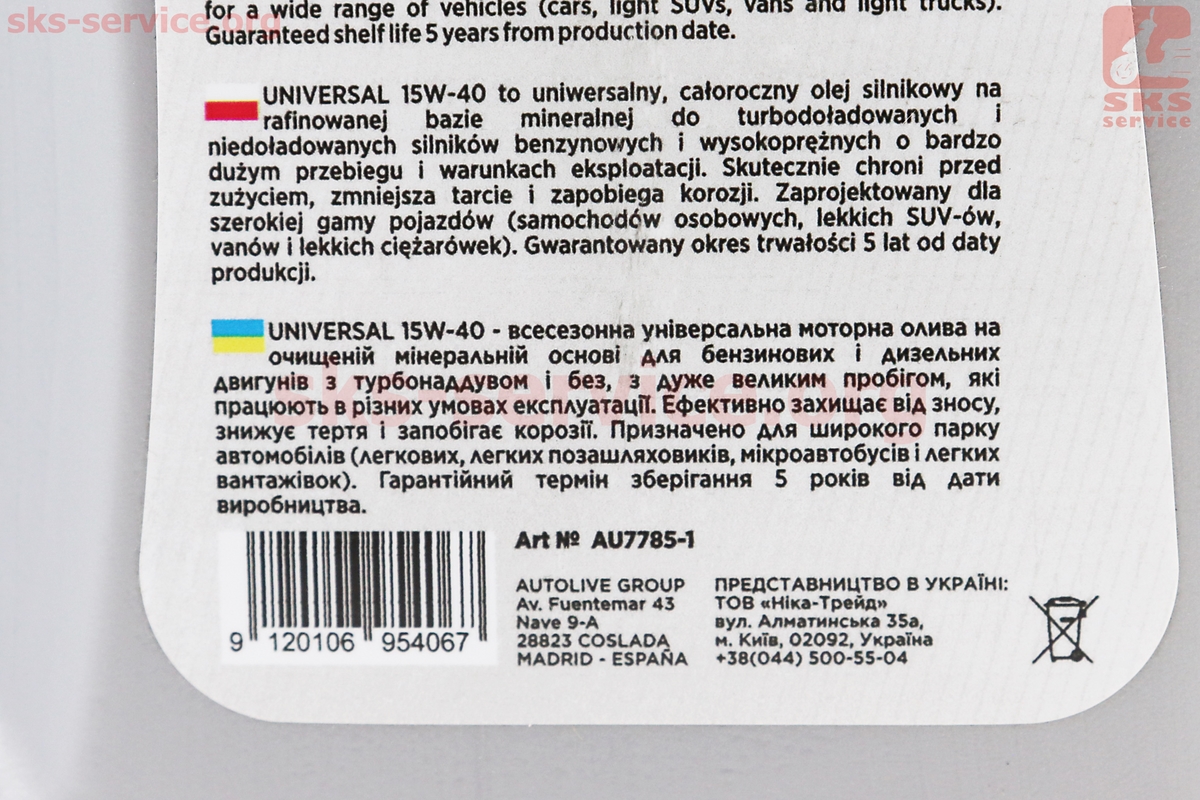 Масло 4T 15W-40 — минеральное универсальное "Universal", 1L