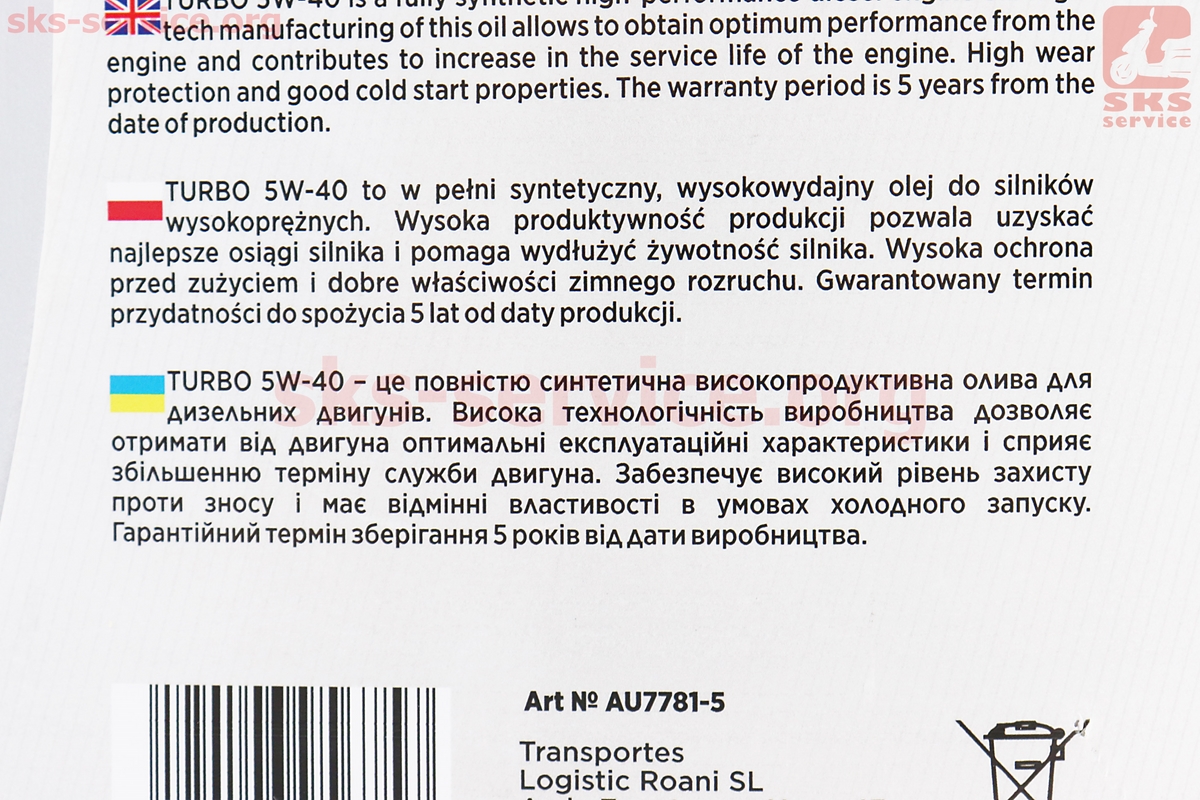 Олива 5W-40 - синтетична дизельна "DIESEL TURBO", 5L