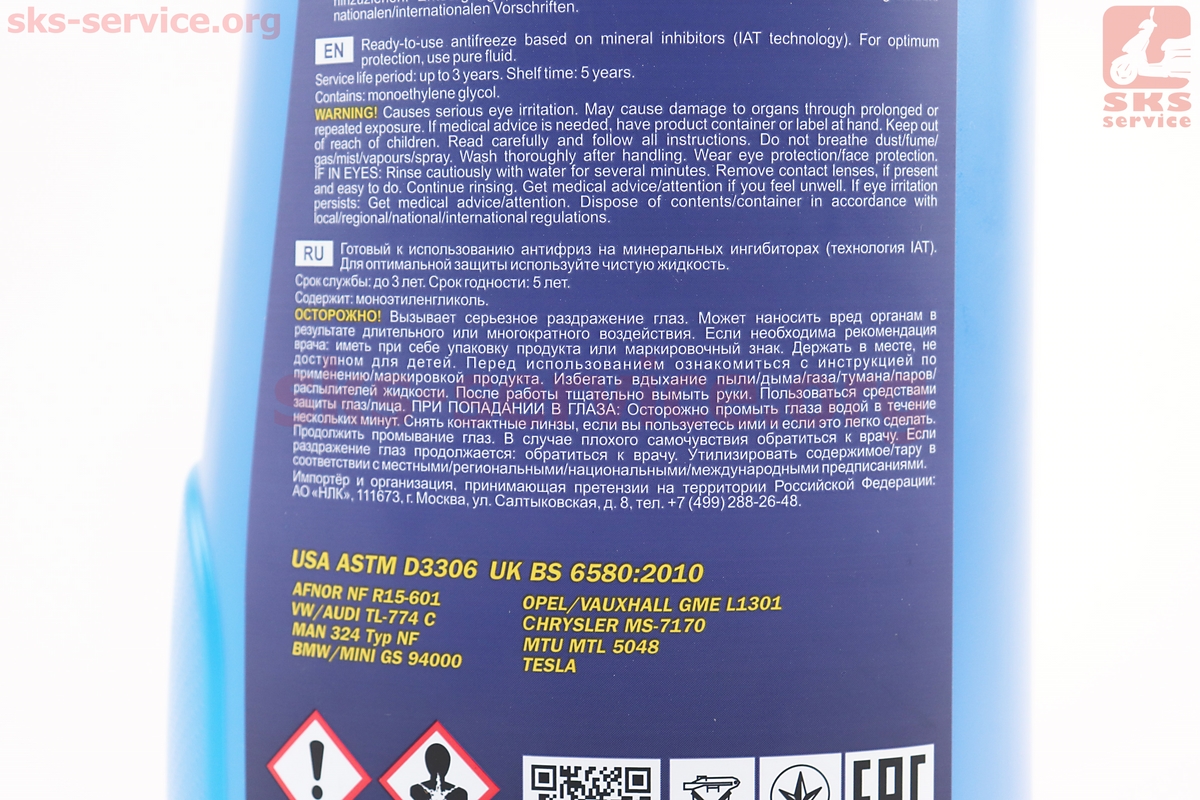 Жидкость охлаждающая -40°C "АНТИФРИЗ АG11", голубая 1L