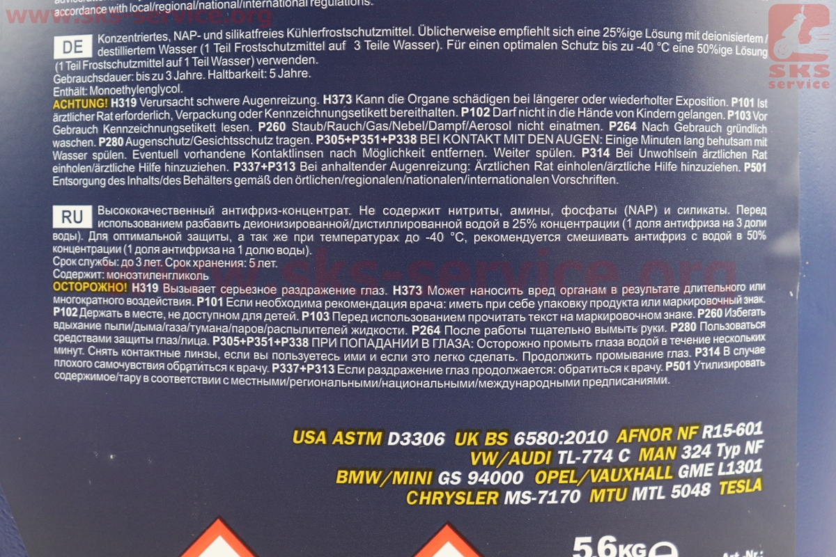 Жидкость охлаждающая концентрат -38°C 1:1 "АНТИФРИЗ AG11", голубая 5L