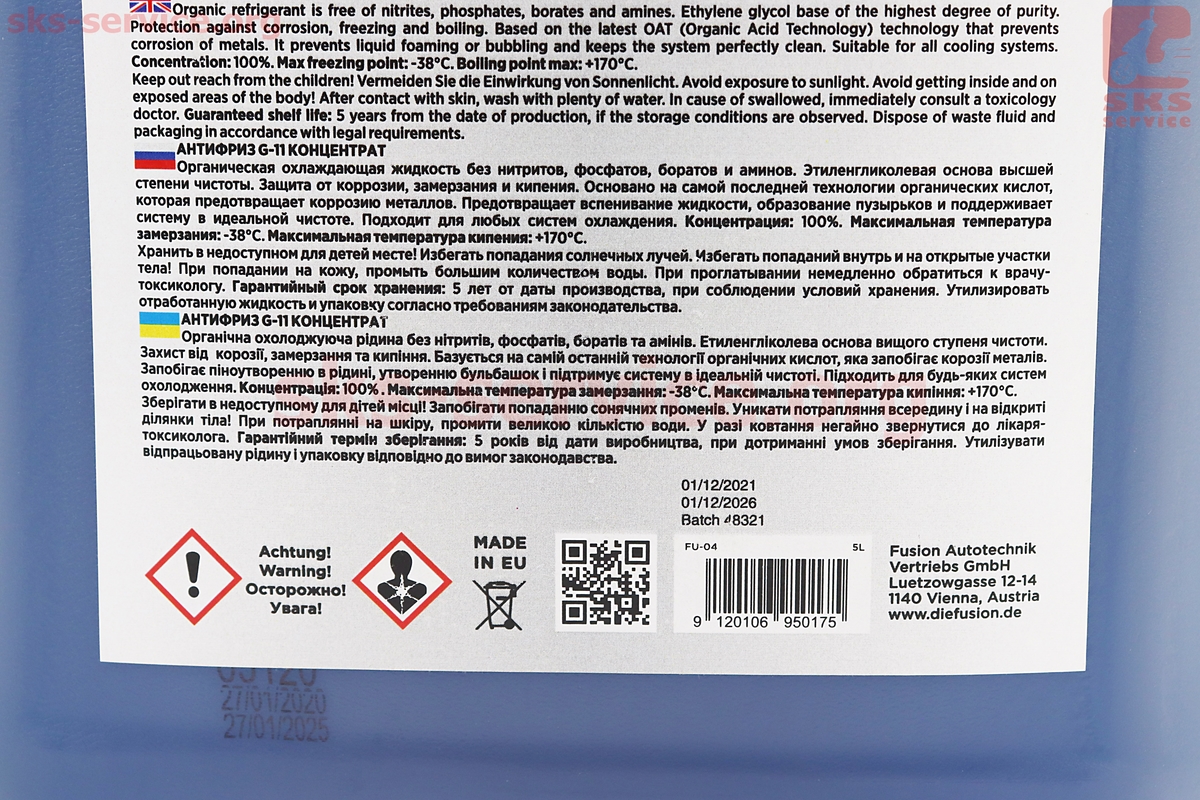 Жидкость охлаждающая концентрат -38°C 1:1 "АНТИФРИЗ G11", голубая 5L