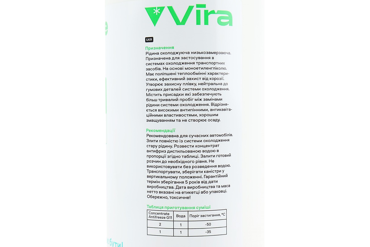Жидкость охлаждающая концентрат -35°C 1:1 "АНТИФРИЗ G11", зеленая 1.5kg