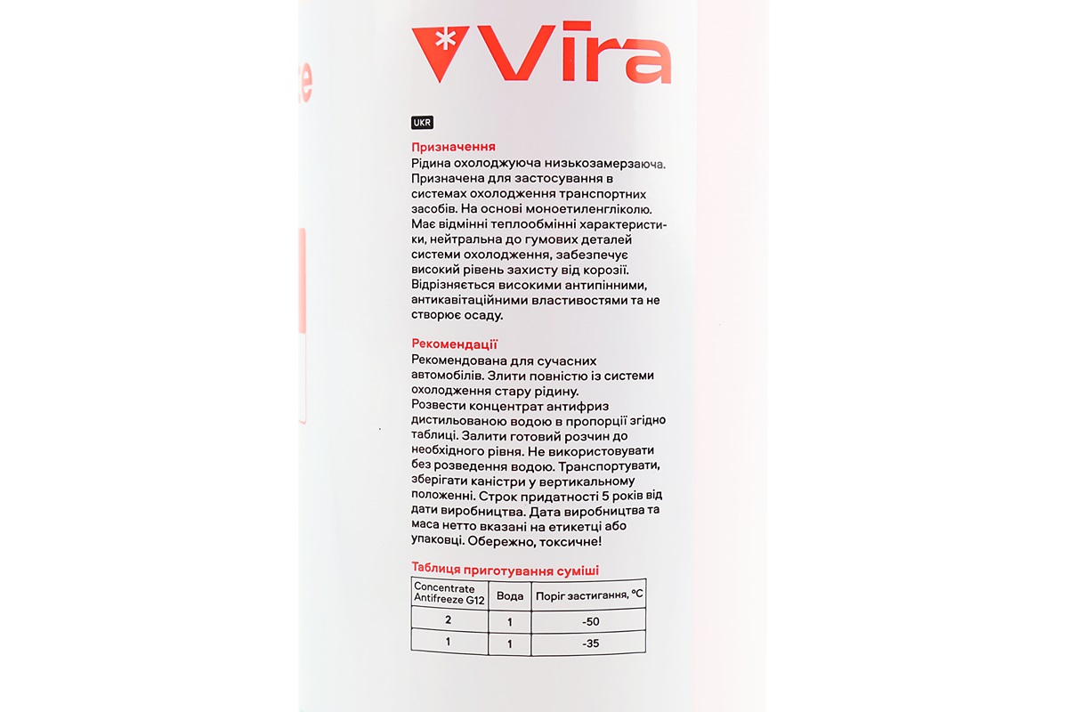 Рідина охолоджуюча концентрат -35°C 1:1 "АНТИФРИЗ G12", червона 1.5kg