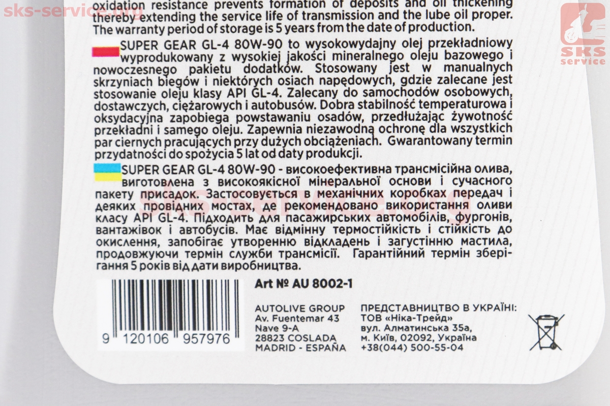 Масло 80W-90 — минеральное трансмиссионное "GL-4", 1L