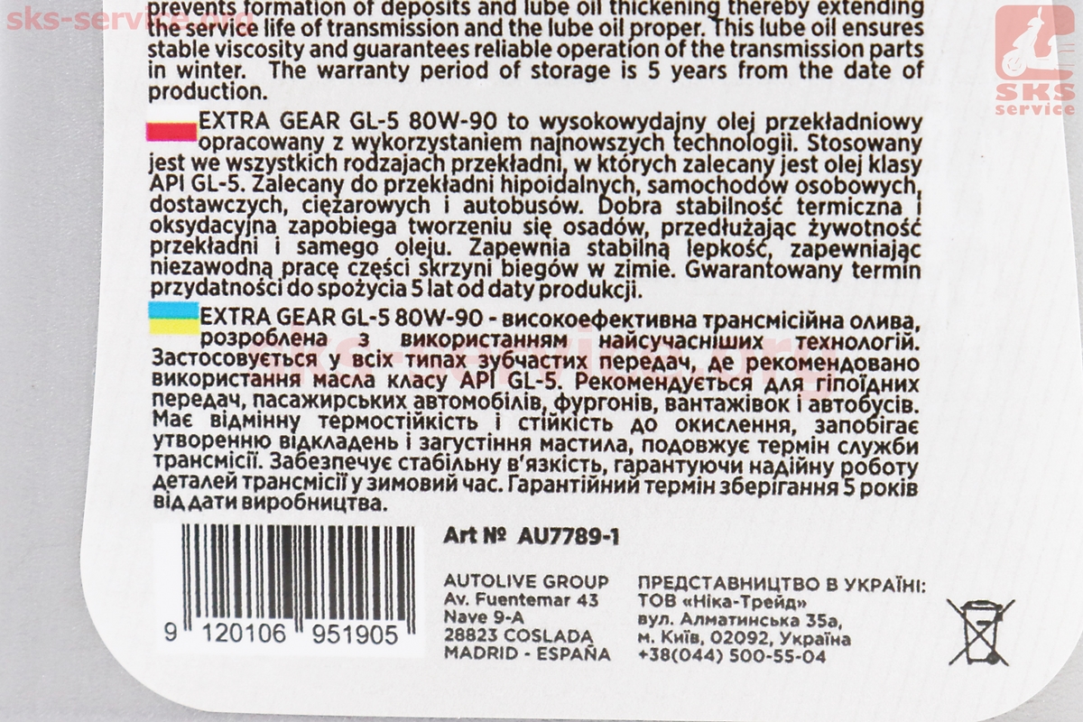 Масло 80W-90 — минеральное трансмиссионное "GL-5", 1L