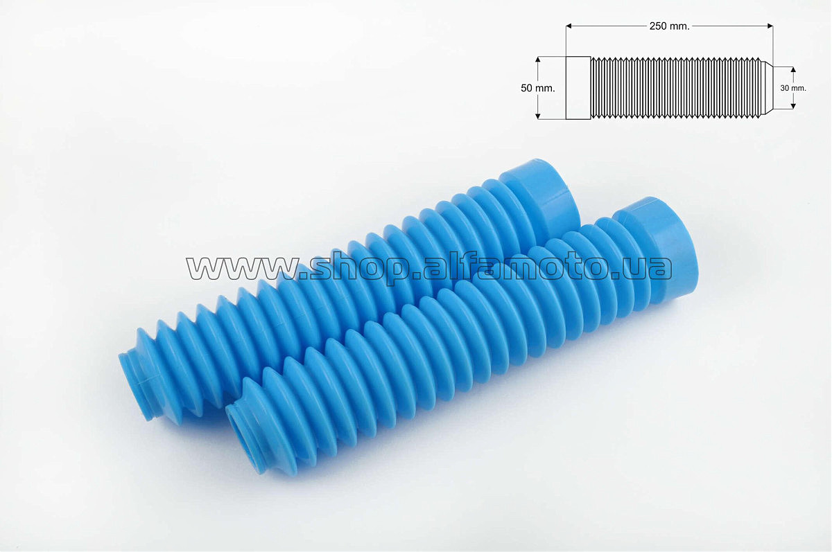 Гофры передней вилки (пара) универсальные L-250mm, d-30mm, D-50mm (голубые) MZK