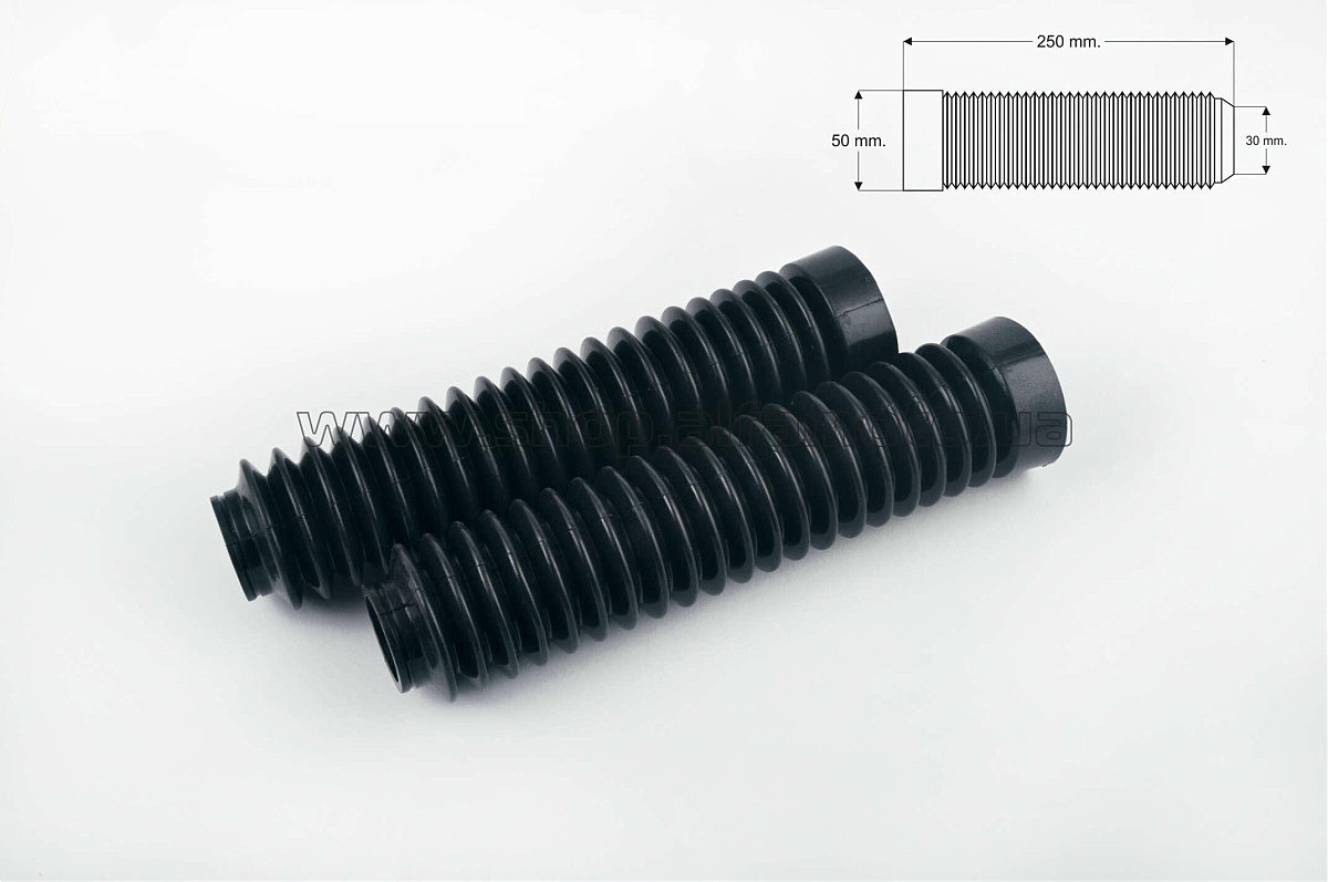 Гофры передней вилки (пара) универсальные L-250mm, d-30mm, D-50mm (черные) MZK