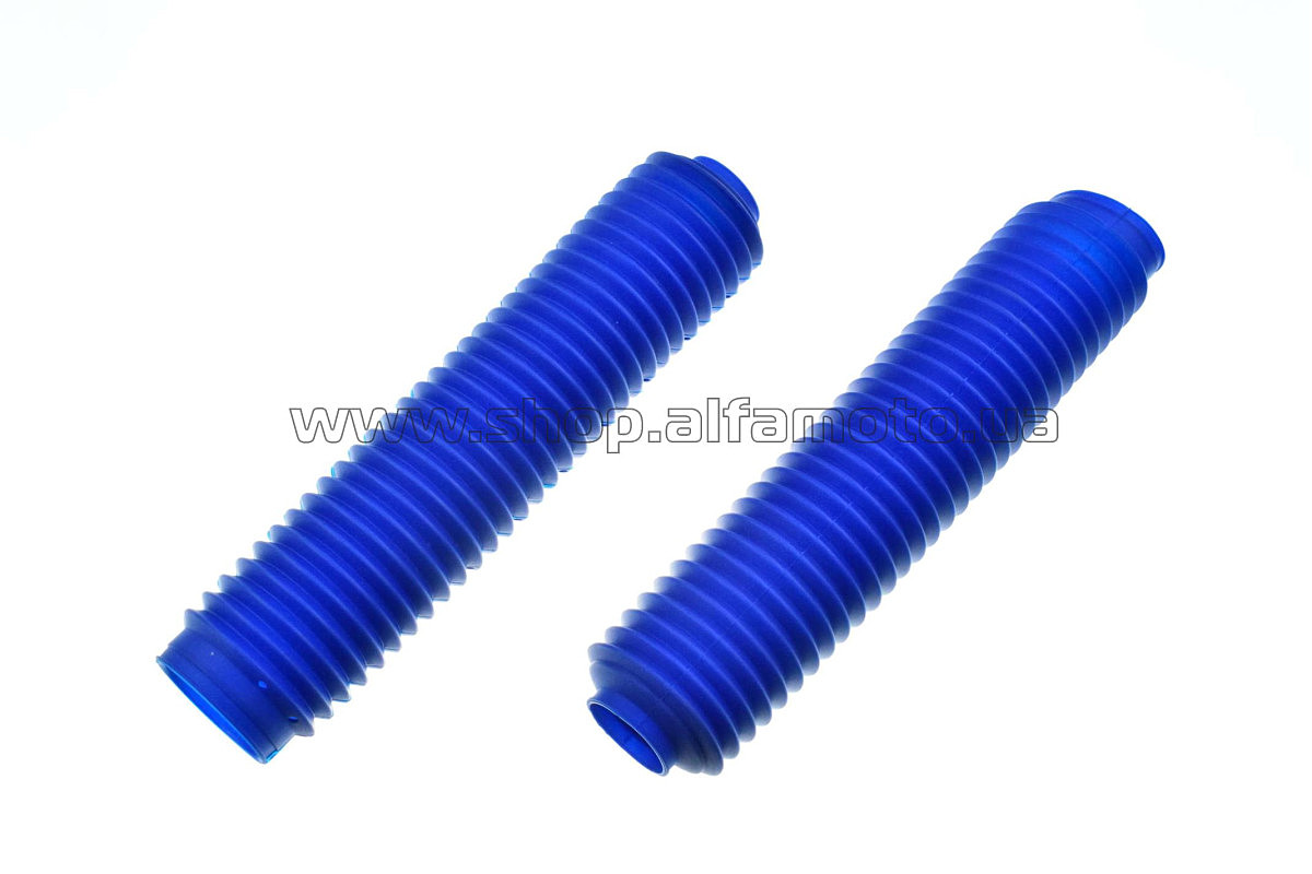 Гофры передней вилки (пара) универсальные L-330mm, d-40mm, D-55mm (синие) MZK