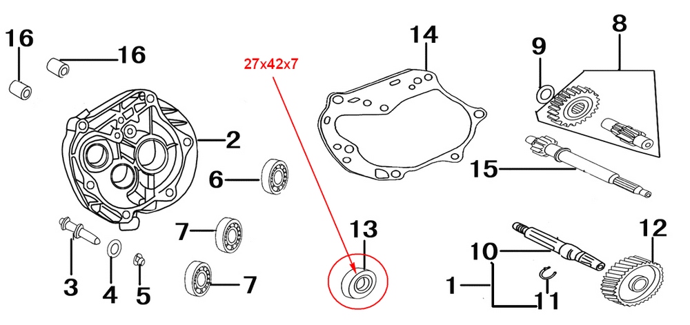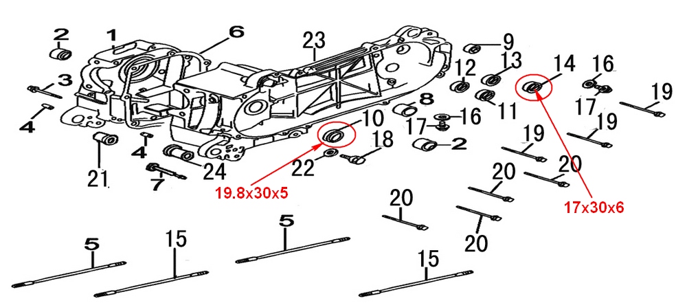 Сальники двигателя GY-70 (27x42x7;20x32x6;19,8x30x5;17x30x6;16,4x30x5)