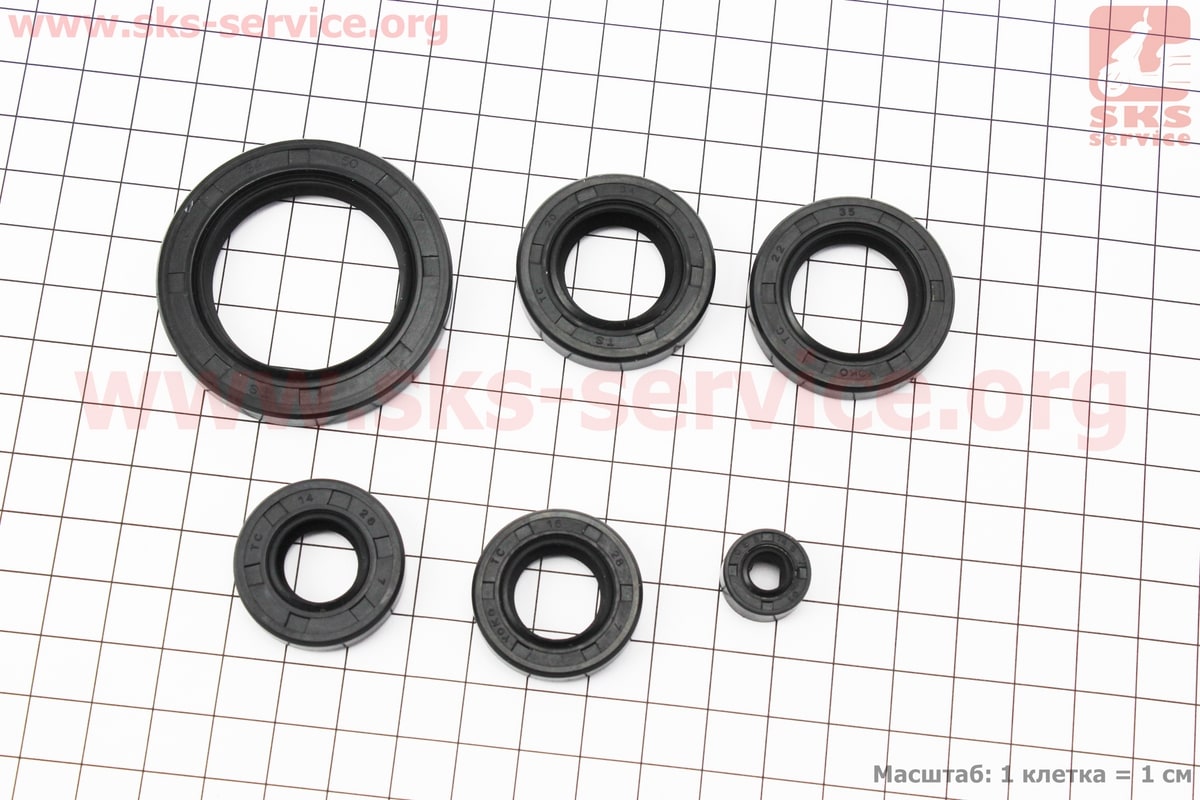 Сальники к-кт 6шт (6,5x14,5x7; 14x28x7; 16x28x7; 20x34x7; 22x35x7; 34x50x7) двигуна, CB/CG-150cc