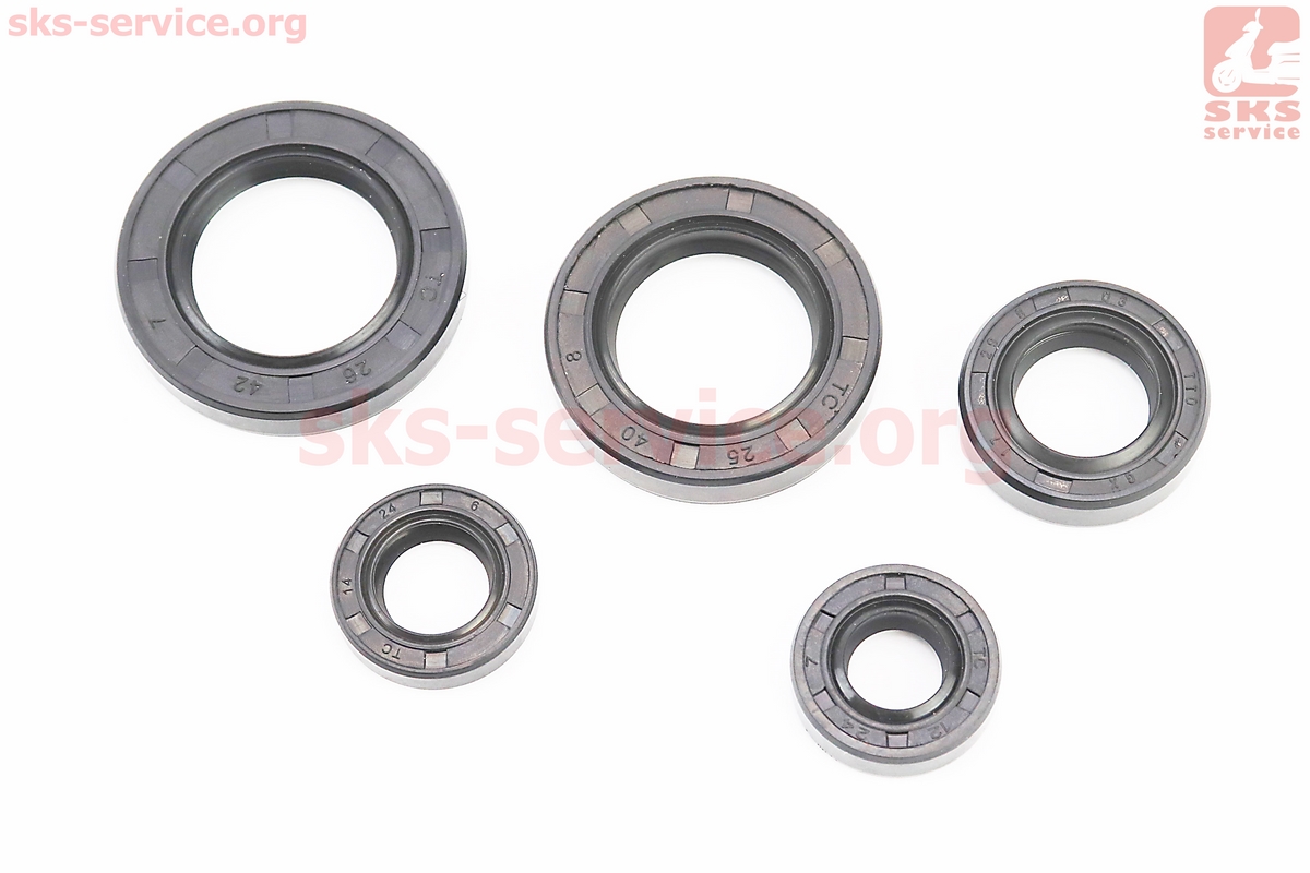 Сальники к-кт 5шт (12x24x7; 14x24x6/7; 17x29x8; 25x40x8; 26x42x7/8) двигуна, TB60