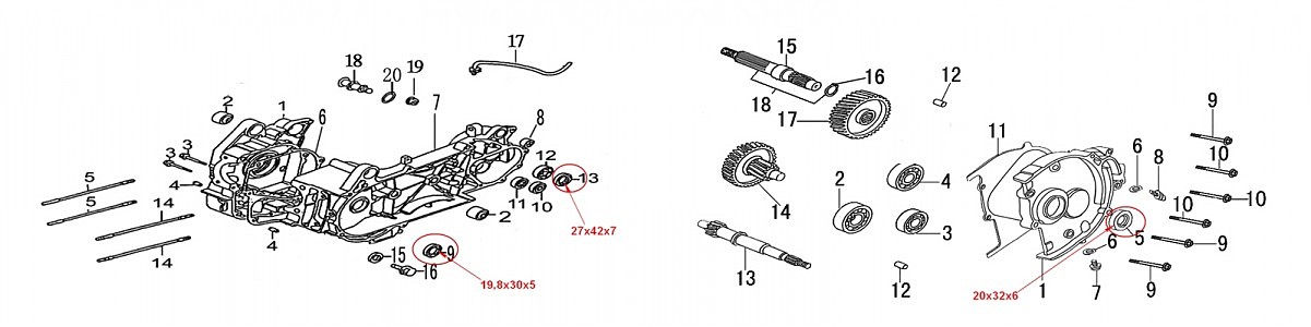 Сальники комплект 1P57QMJ Lifan(20x32x6;19,8x30x5;27x42x7)