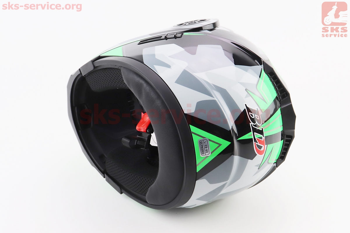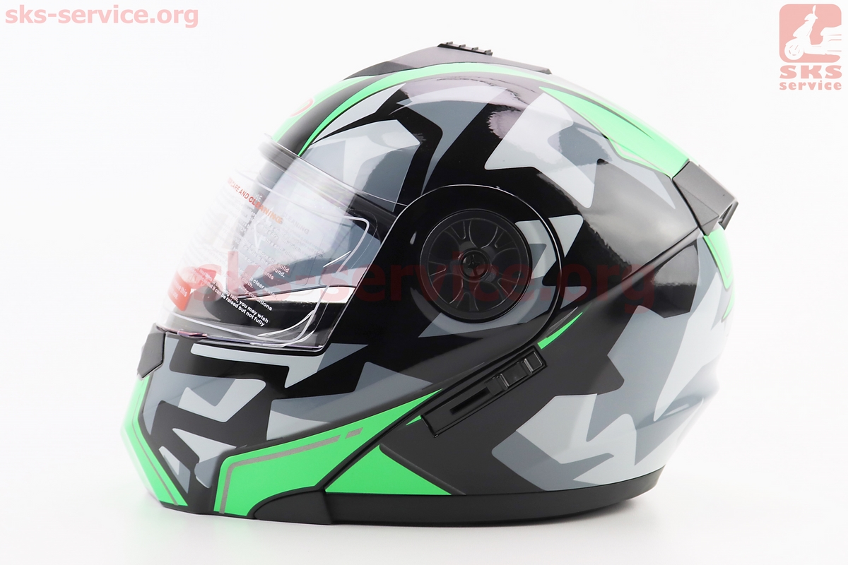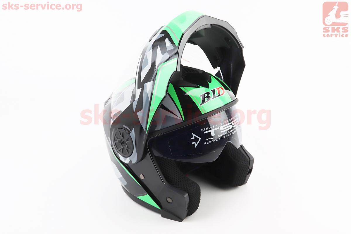Шлем модуляр, закрытый с откидным подбородком+откидные очки BLD-159 L (59-60см), ЧЕРНО-ЗЕЛЕНЫЙ