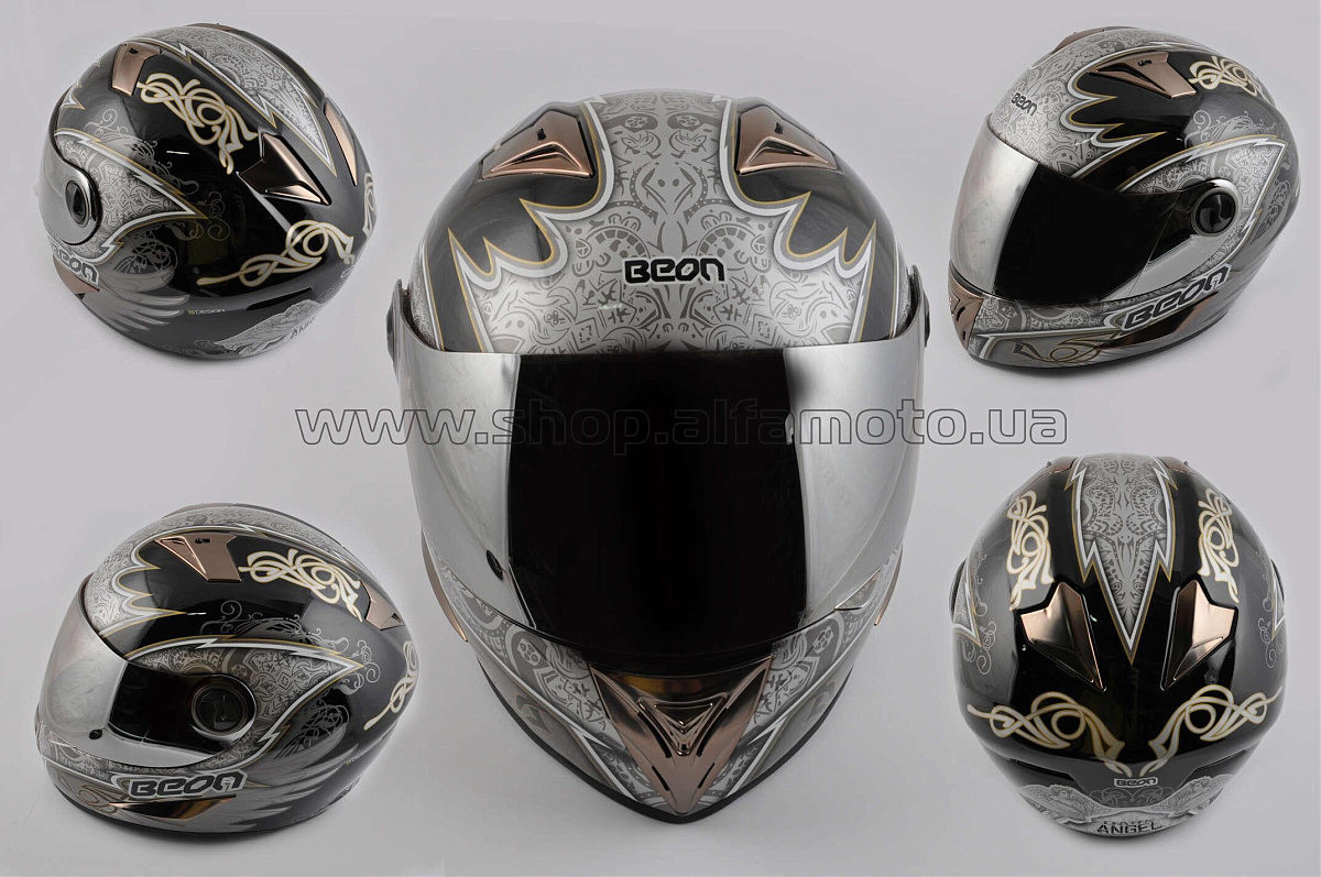 Шлем-интеграл (mod:B-500) (size:XL, черно-серый, зеркальный визор, DARK ANGEL) BEON