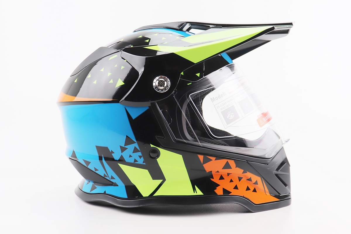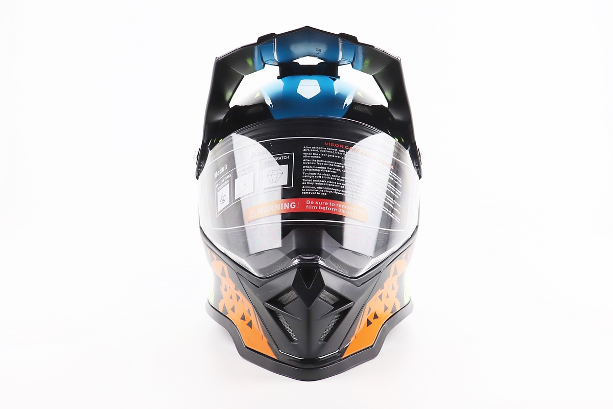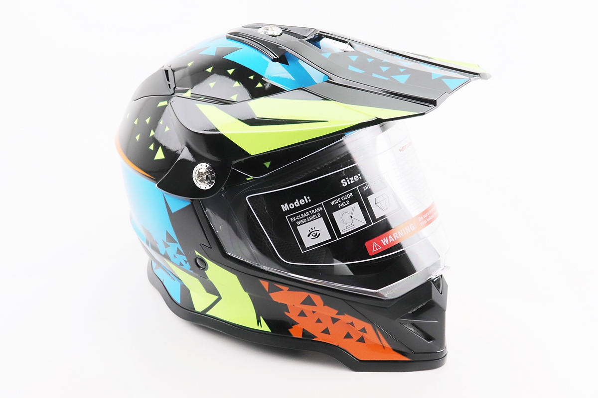 Шлем кроссовый/эндуро/АТV со стеклом BLD-819-7  S (55-56см), ЧЕРНЫЙ/ЖЕЛТО-СИНИЙ