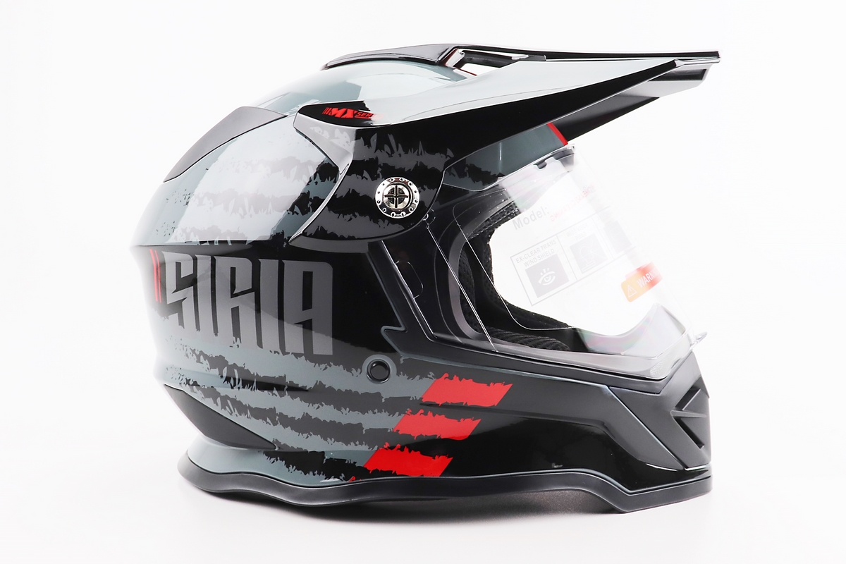 Шлем кроссовый/эндуро/АТV со стеклом BLD-819-7 М (57-58см), ЧЕРНЫЙ/СЕРО-КРАСНЫЙ