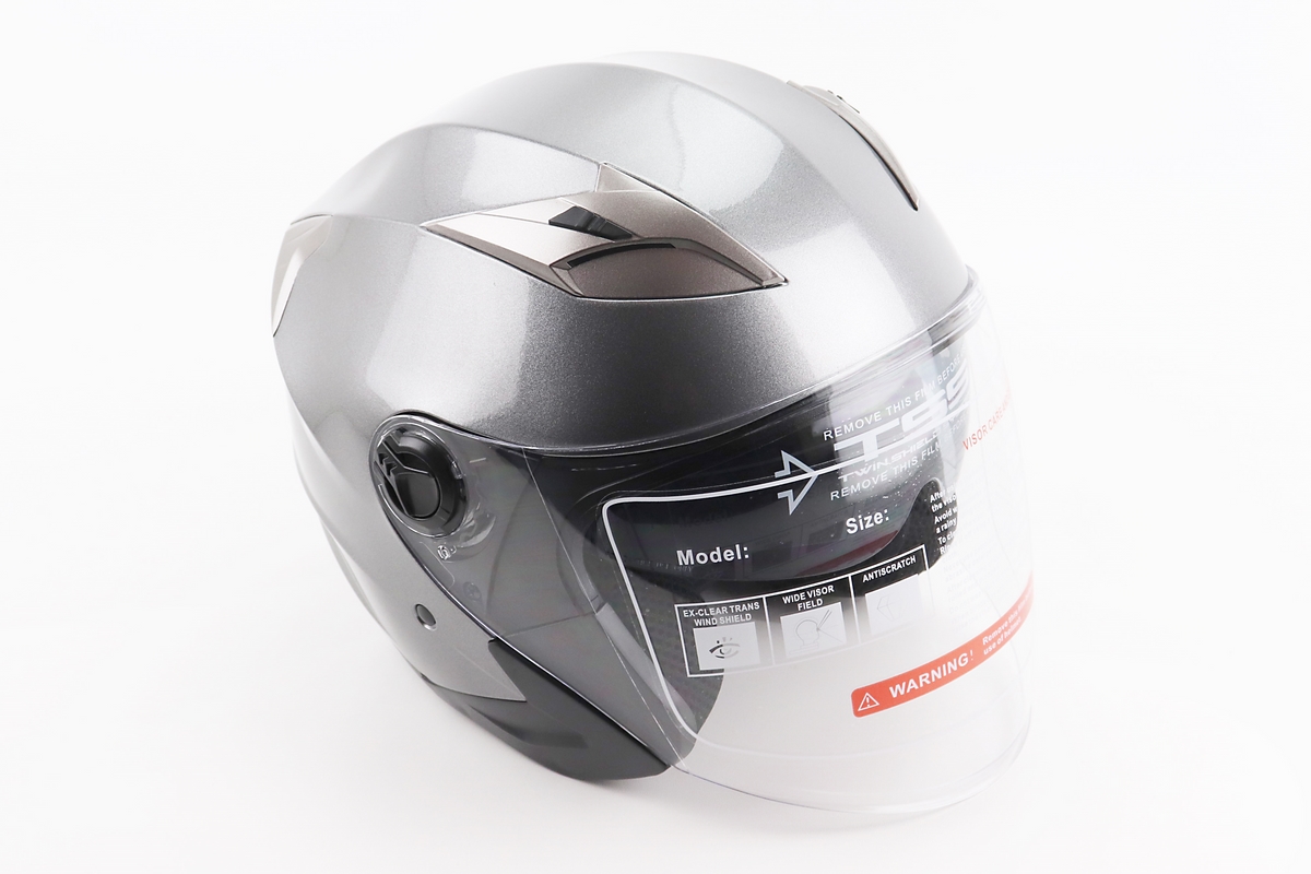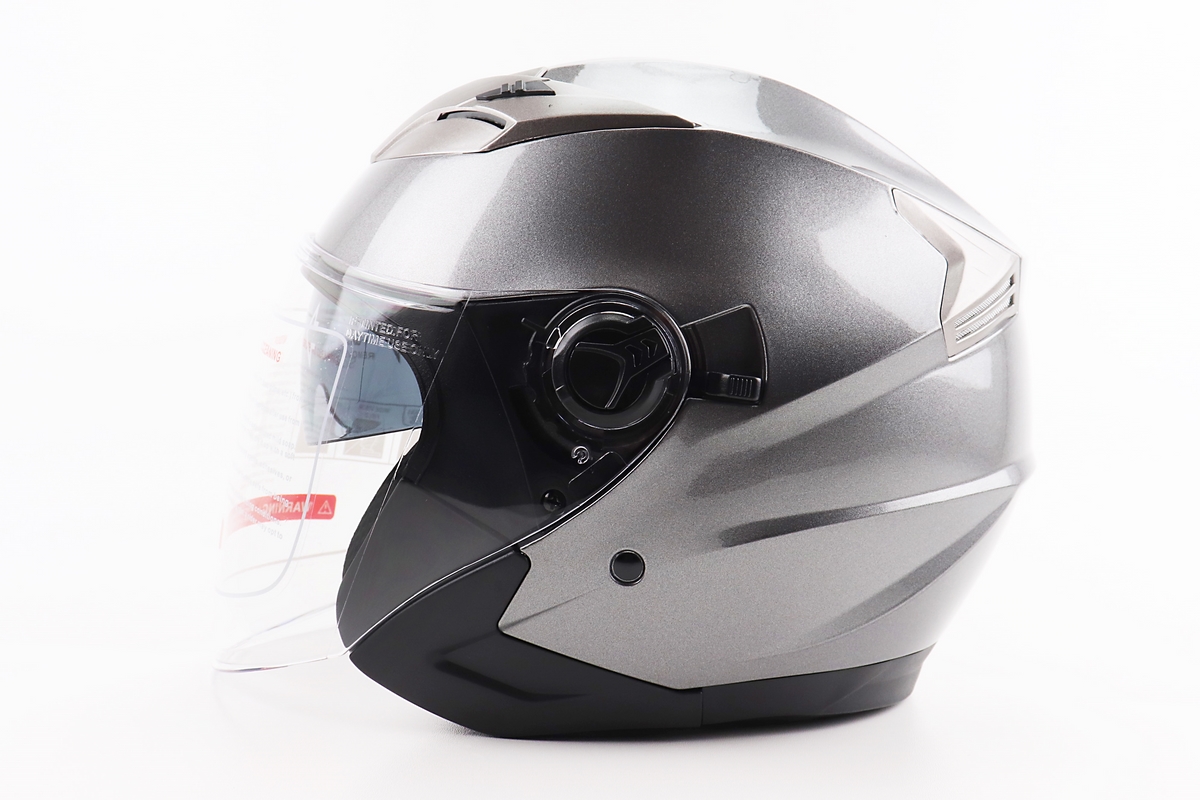 Шлем открытый+откидные очки BLD-708 S (55-56см), СЕРЫЙ глянец