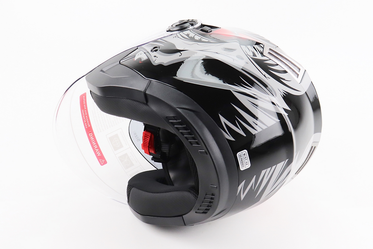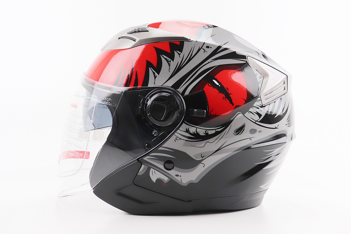 Шлем открытый+откидные очки BLD-708 М (57-58см), ЧЕРНО-КРАСНЫЙ "Raptor"