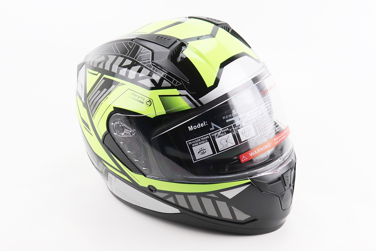 Шлем интеграл, закрытый (сертификация DOT)+откидные очки BLD-M67 L (59-60см), ЧЕРНЫЙ/НЕОНОВО-ЗЕЛЕНЫЙ