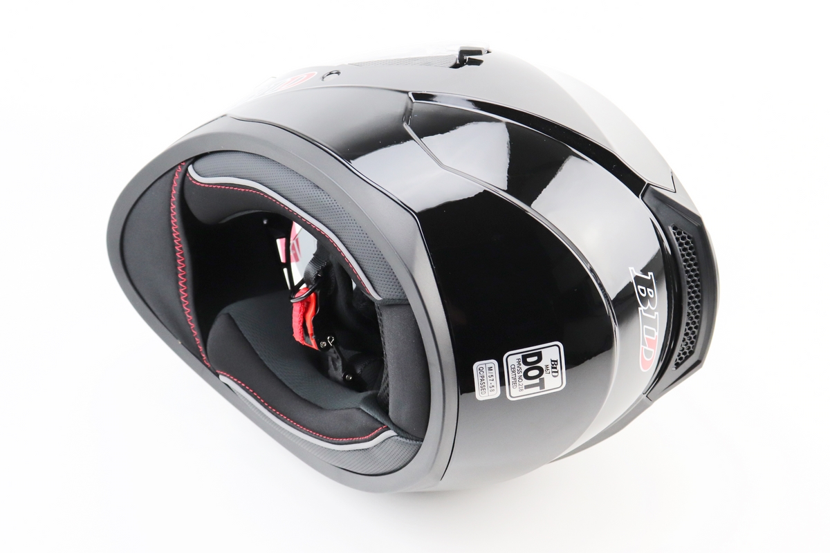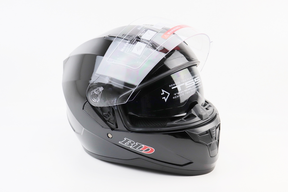 Шлем интеграл, закрытый (сертификация DOT)+откидные очки BLD-M67 М (57-58см), ЧЕРНЫЙ глянец