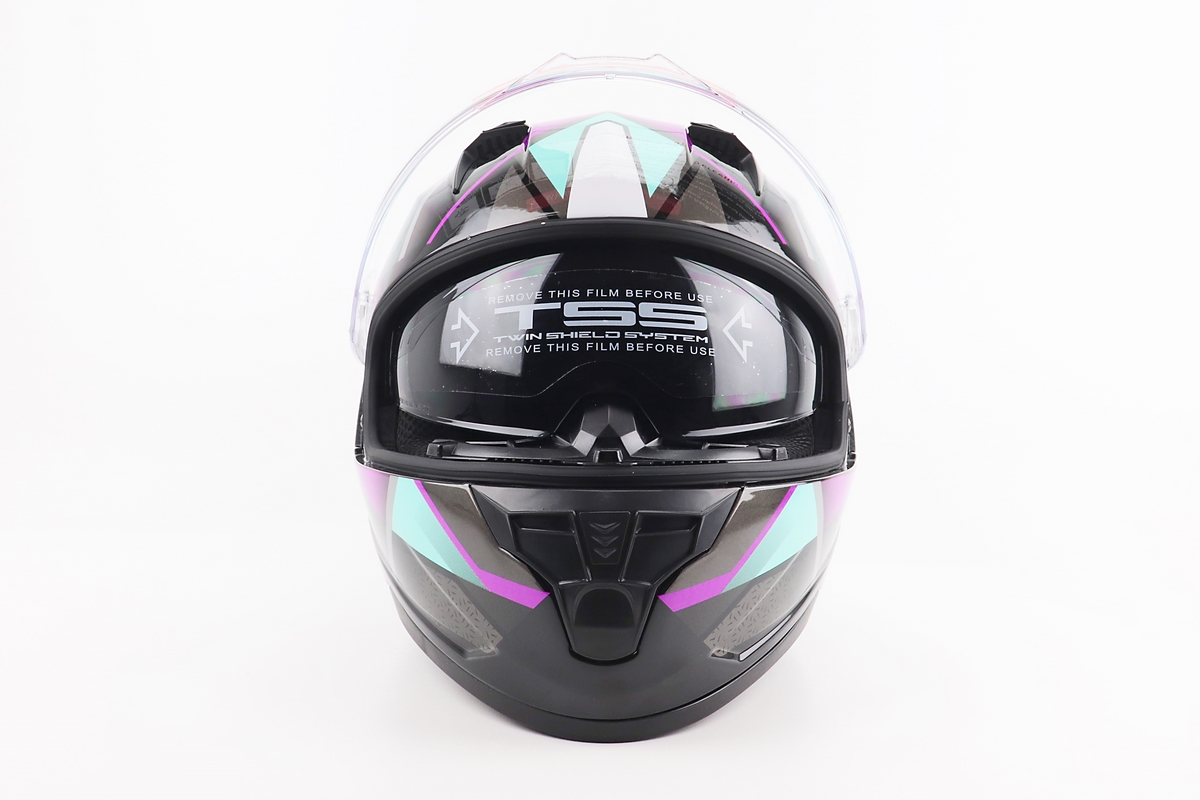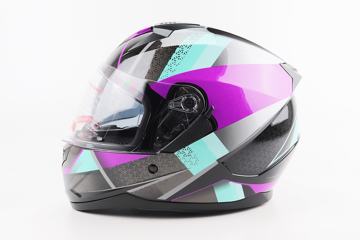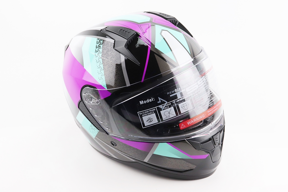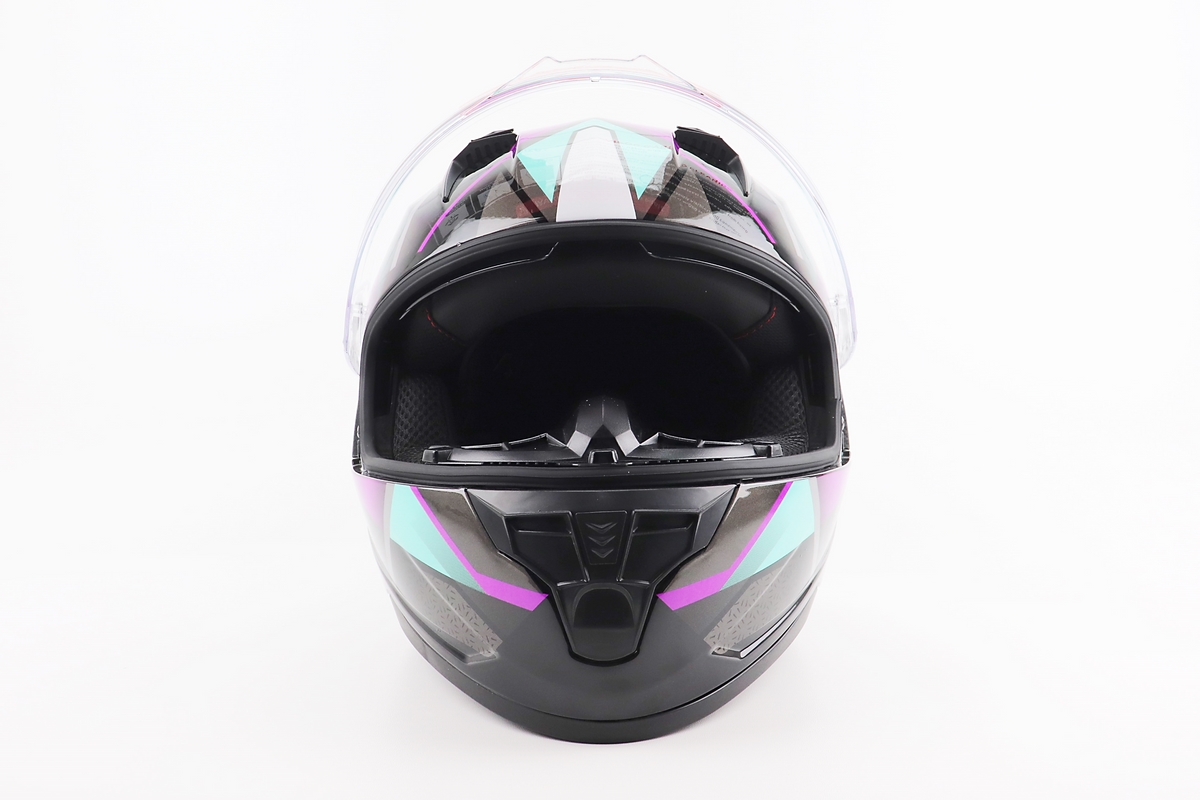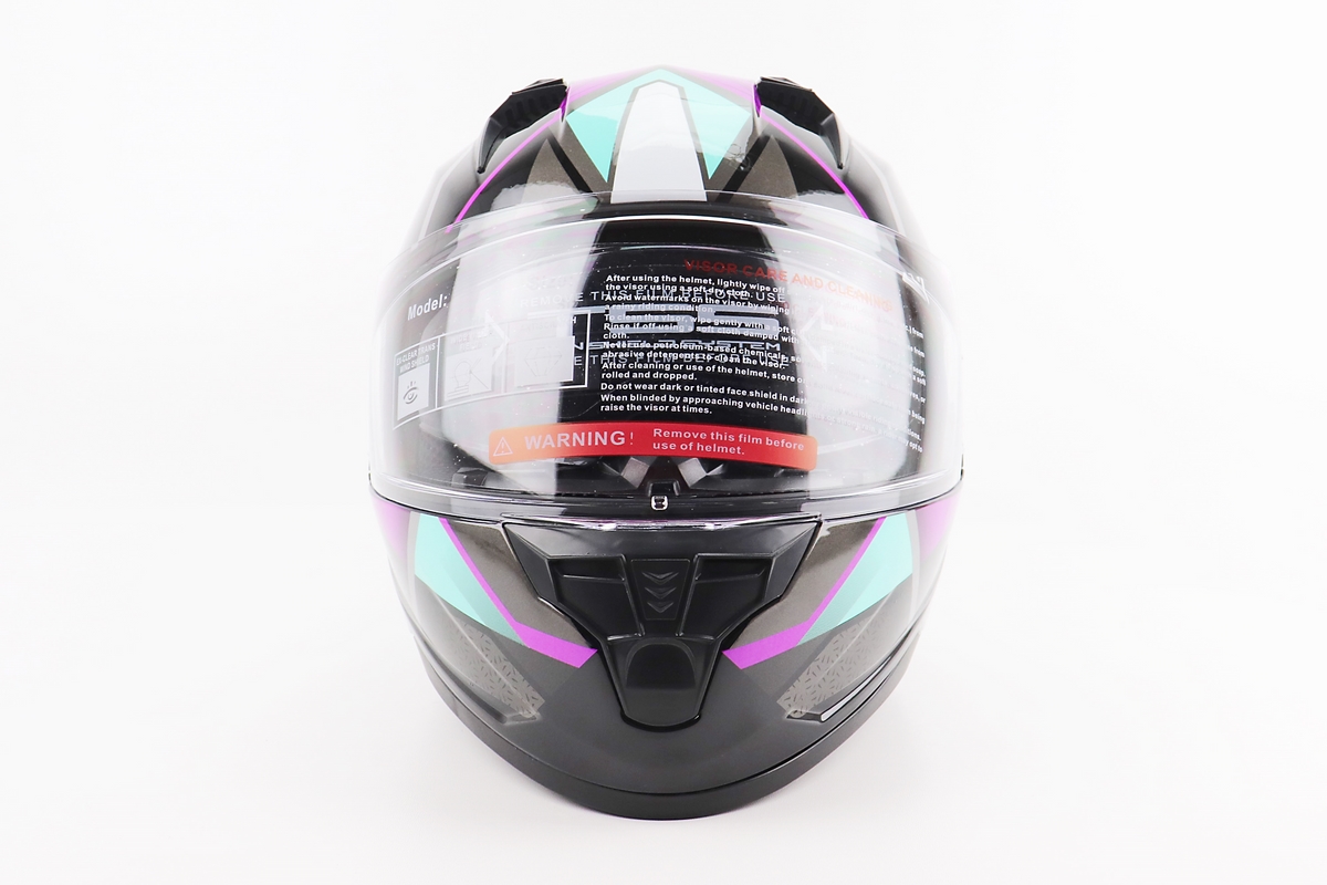 Шлем интеграл, закрытый (сертификация DOT)+откидные очки BLD-M67 М (57-58см), ЧЕРНЫЙ/ФИОЛЕТОВО-БИРЮЗОВЫЙ