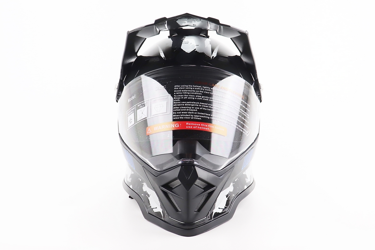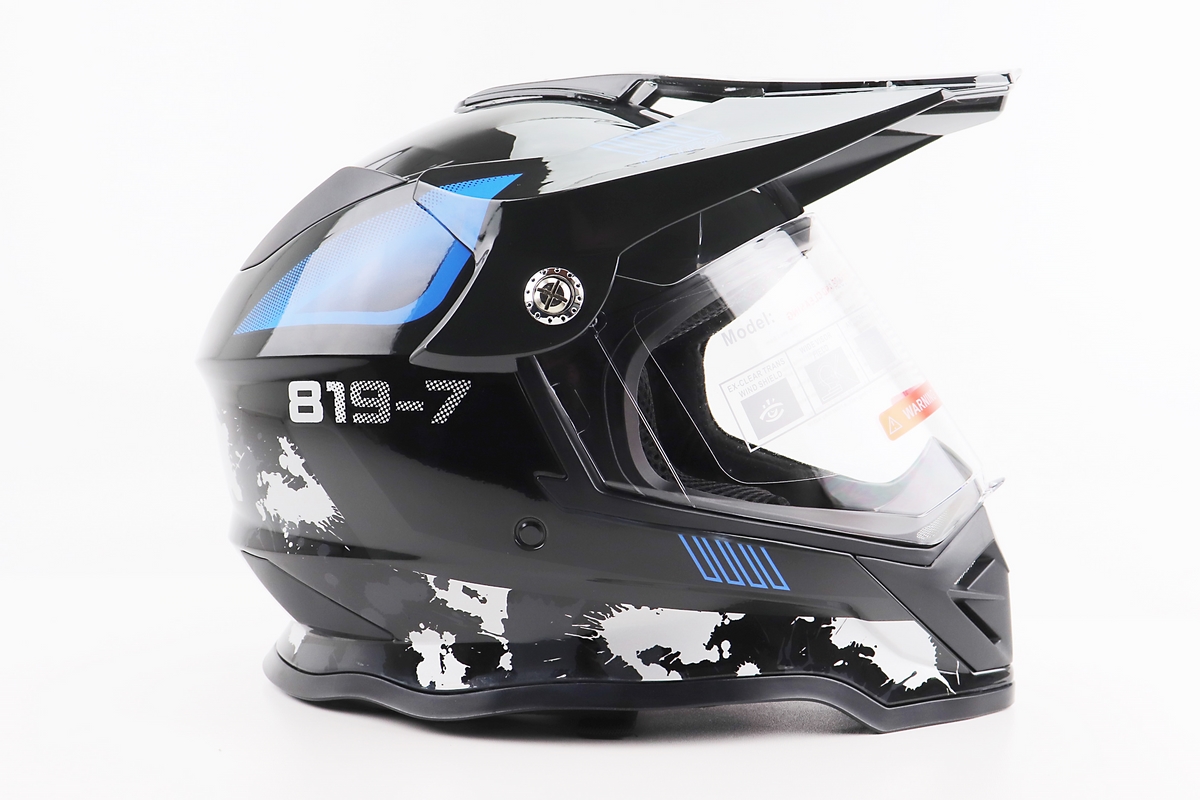 Шлем кроссовый/эндуро/АТV со стеклом BLD-819-7 L (59-60см), ЧЕРНЫЙ/СЕРО-СИНИЙ